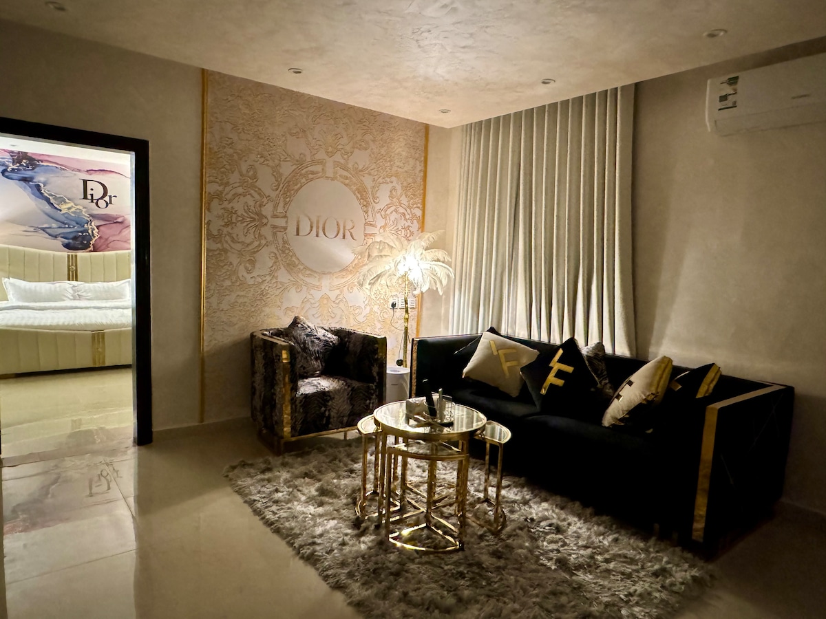 Welcome to "Dior," a luxurious suite in the heart of Jeddah, perfect for newlyweds and families. Enjoy elegant décor, a cinema-style TV, massage jacuzzi, steam room, public pool, sauna, and an entertainment lounge. Experience unparalleled comfort and sophistication. Enjoy stunning city views and personalized services, making every moment unforgettable. Book now to discover Dior's charm.