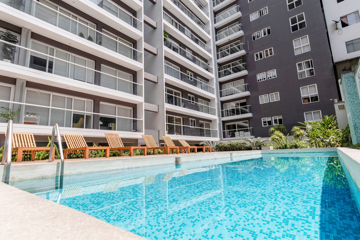 Modernong flat/Pool/Paradahan/Wifi/Netflix/Smartkey
