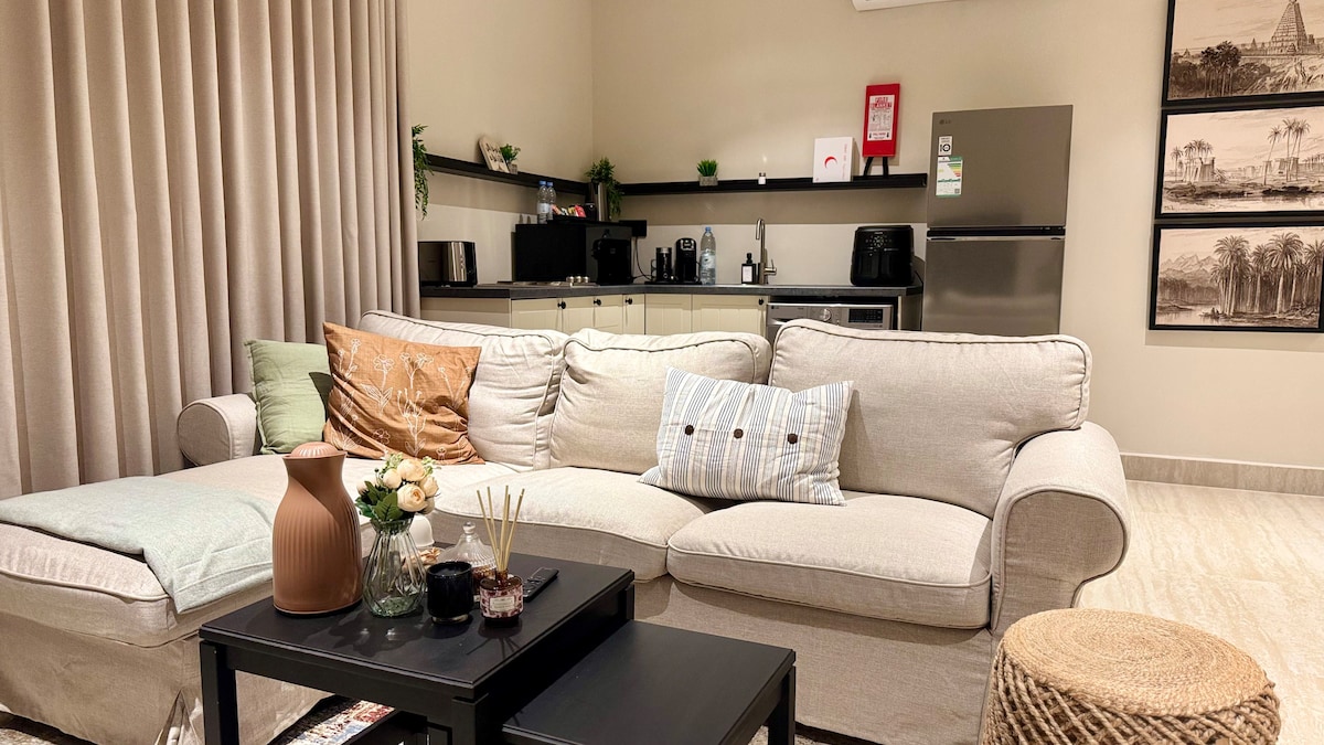 Isang high - end na apartment sa distrito ng Ard sa hilaga ng Riyadh, na nagtatampok ng estratehikong lokasyon malapit sa King Khalid International Airport (humigit - kumulang 23 km), 8 km lang mula sa Al Habib Hospital, at 15 minuto mula sa Boulevard. Binubuo ito ng isang silid-tulugan at isang pasilyo na may espasyo para sa pagluluto at banyo, at dinisenyo ito na may eleganteng at komportableng kasangkapan, na angkop para sa maikli o mahabang pamamalagi. Nagtatampok ito ng self - checking para sa kumpletong kaginhawaan at accessibility, na may libreng internet at smart TV. Napakalinis ng apartment, na may mga bagong kagamitan, na matatagpuan sa isang moderno at ganap na bagong gusali, para matiyak ang komportable at ligtas na pamamalagi para sa bisita.