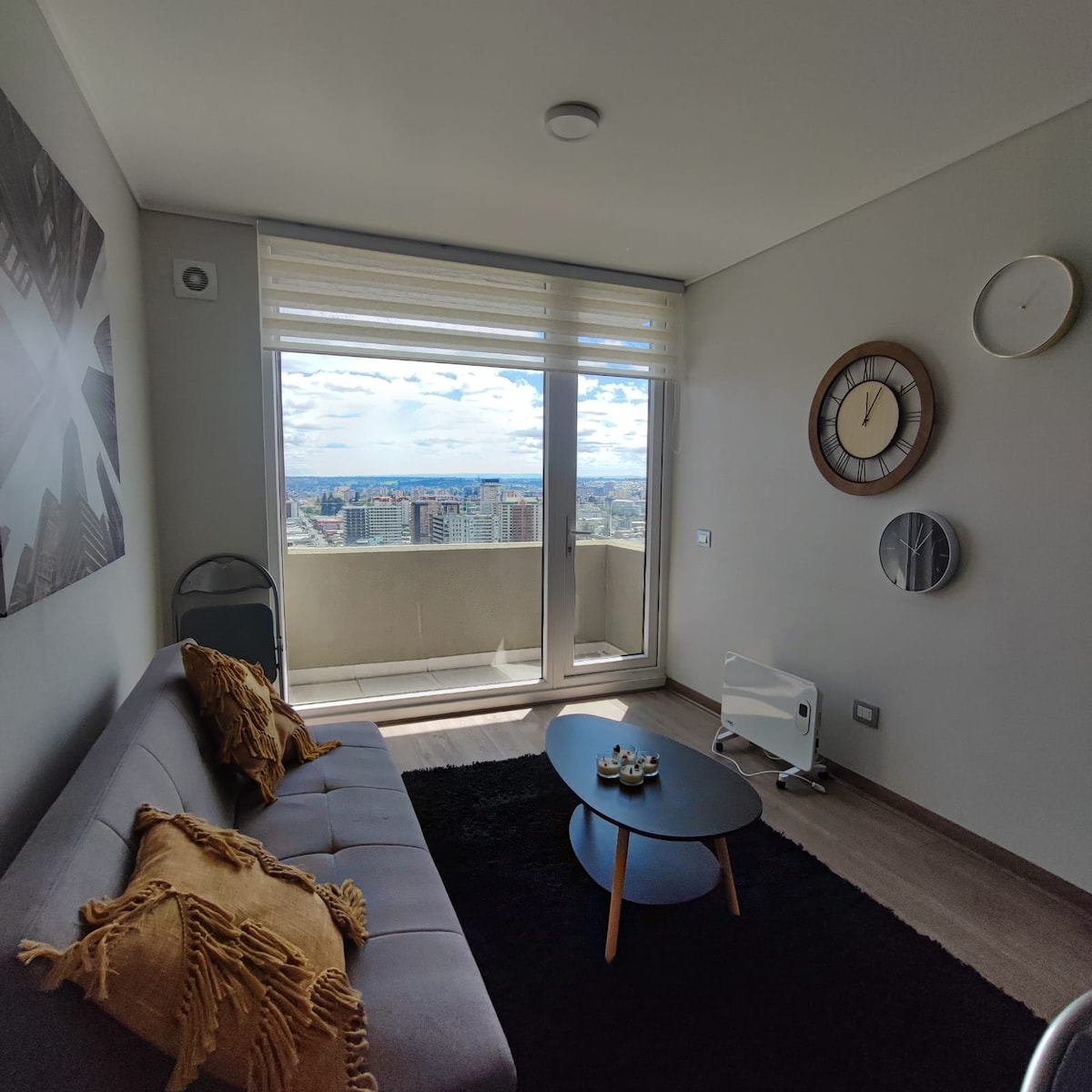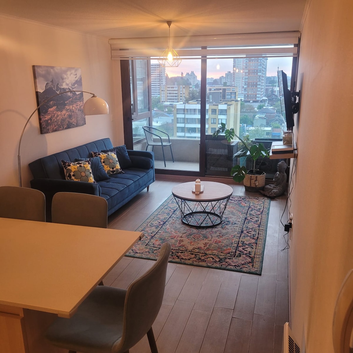 Disfruta de la sencillez de este alojamiento tranquilo , céntrico ,acogedor, cómodo departamento ubicado a la entrada de temuco de muy fácil acceso, a solo 10 minutos del centro de la ciudad a 5 minutos de los outllet ,con supermercado al lado y locomoción a la puerta si la necesita , a 5 minutos de terminal de buses , rodoviario, con una linda vista y seguridad 24 horas.