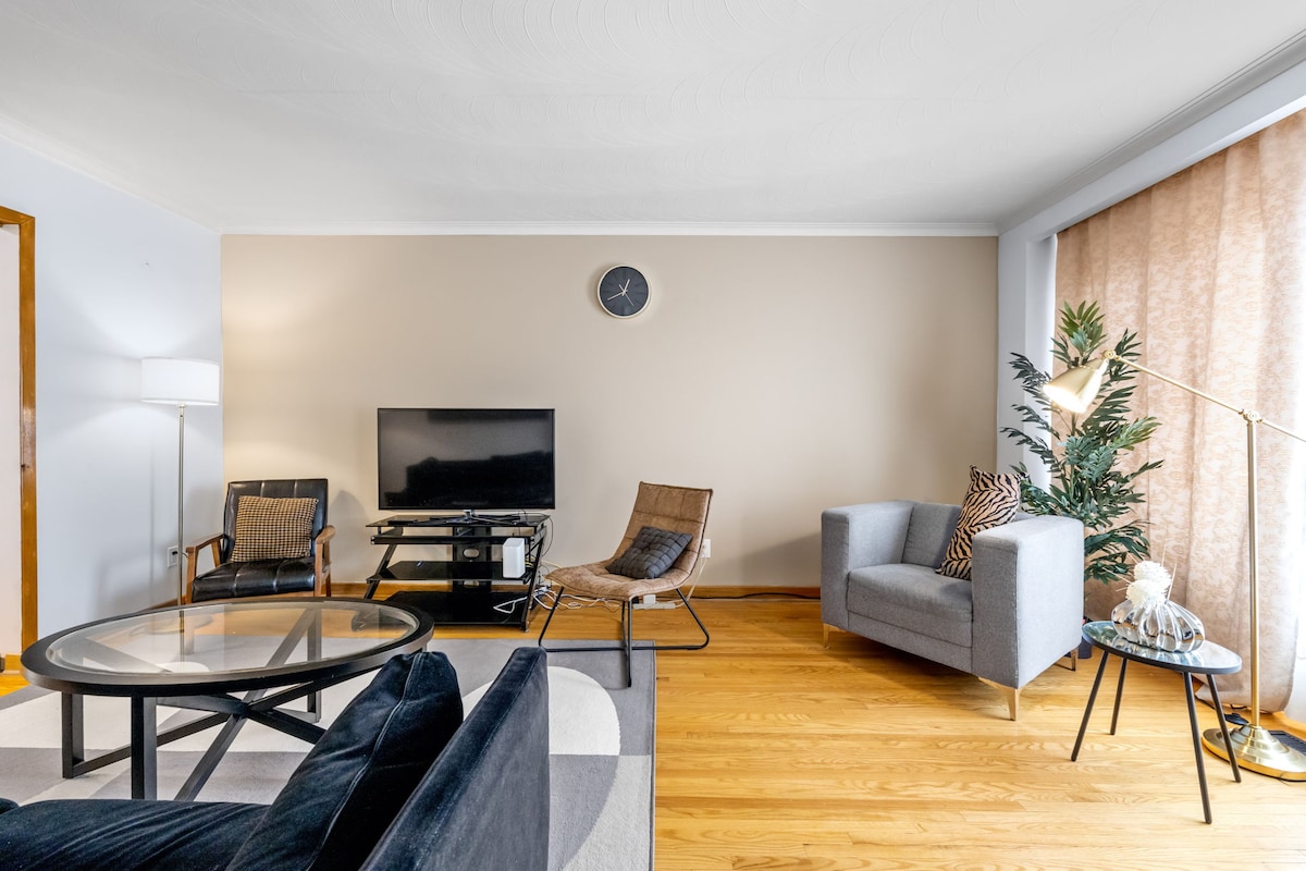Mamalagi sa maaliwalas, maestilong, bagong inayos na bungalow na may 3 kuwarto at 2 kumpletong banyo sa Elrose Road sa Brampton. Mag-enjoy sa tuluyang may isang palapag lang—perpekto para sa mga nakatatanda at pamilyang may mga bata. Maliwanag at maluluwang na interior, kumpletong kusina, mabilis na Wi‑Fi, at tahimik at ligtas na kapitbahayan na malapit sa mga parke, daanan, shopping, at kainan. 15 minuto lang papunta sa Toronto Pearson International Airport, 7 minuto papunta sa Bramalea GO Station, at 3 minuto papunta sa Bramalea City Centre. May kasamang libreng paradahan para sa 3 SUV sa driveway.