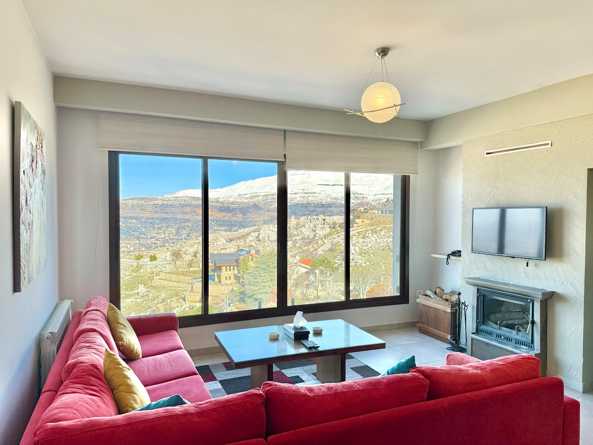 [Special Weekly & Monthly Rates] All you need for a great skiing trip. Escape to the mountains at this fully equipped and renovated apartment in Zaarour Club, just 1 minute drive to the slopes and Zaarour lake and 45 min drive to Mzaar/Faraya slopes. Wake up to breathtaking views of Sannine Mountain and enjoy quality time with family and friends. Includes: 24/7 electricity with backup, central heating, modern fireplace, Wi-Fi, and covered parking.