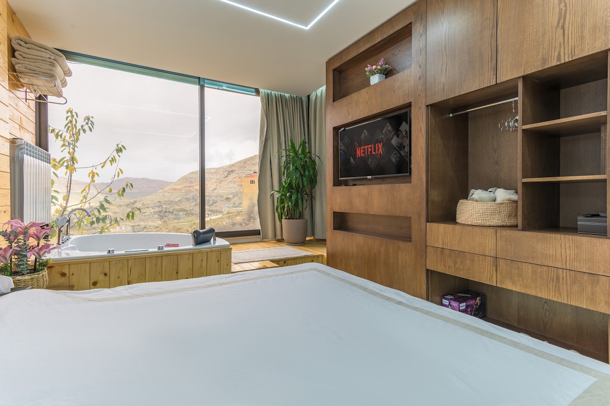A one of a kind rooftop guest house overlooking breathtaking views of the mountains. The guesthouse is a 4 minute drive to Mzaar Ski Resort and Faqra Club.