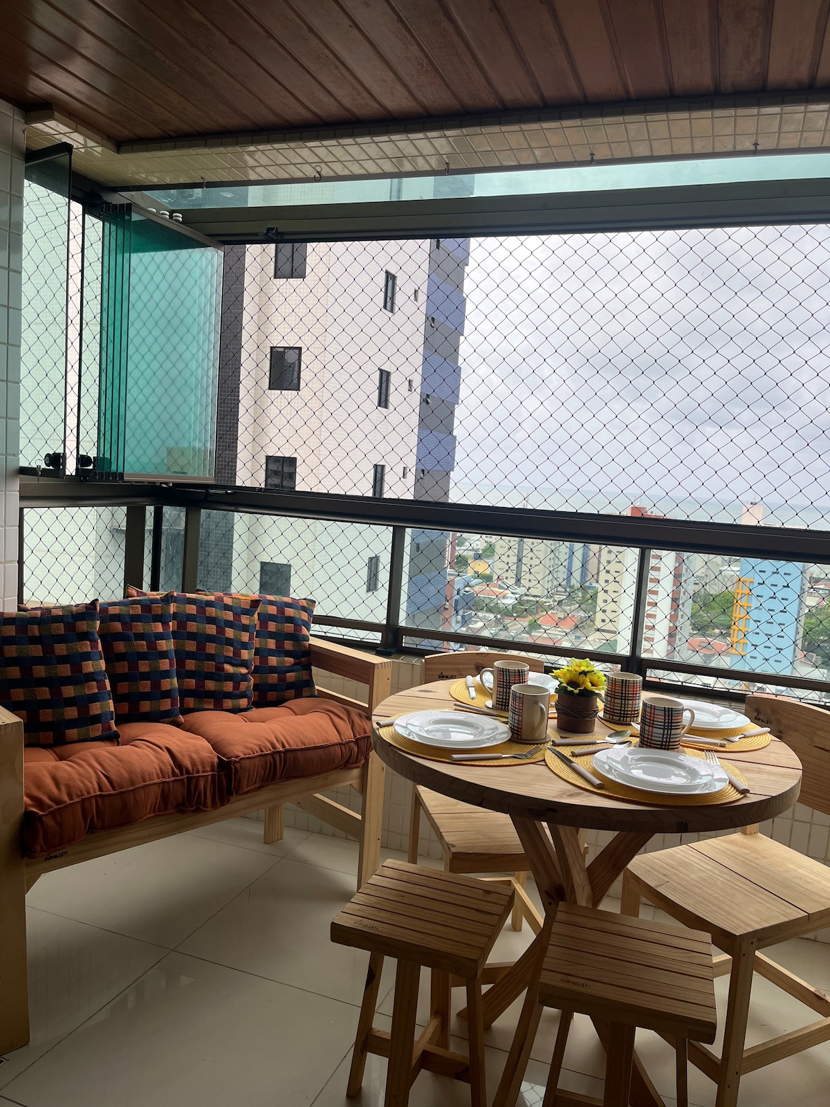 Manaíra kapitbahayan. Malapit sa beach at malapit sa sining at kultura, taxi at bus stop. Magandang lokasyon. Malapit sa malaking pamilihan at malapit sa mga botika, meryenda at restawran. Lahat para masulit ang iyong pamamalagi. Bago at komportable ang apartment, na may available na sapin sa higaan, kumpletong kusina at air conditioning sa mga kuwarto. Ang gusali ay may 2 social lift, isang magandang lugar na libangan na may rooftop pool na may mga malalawak na tanawin ng buong waterfront.