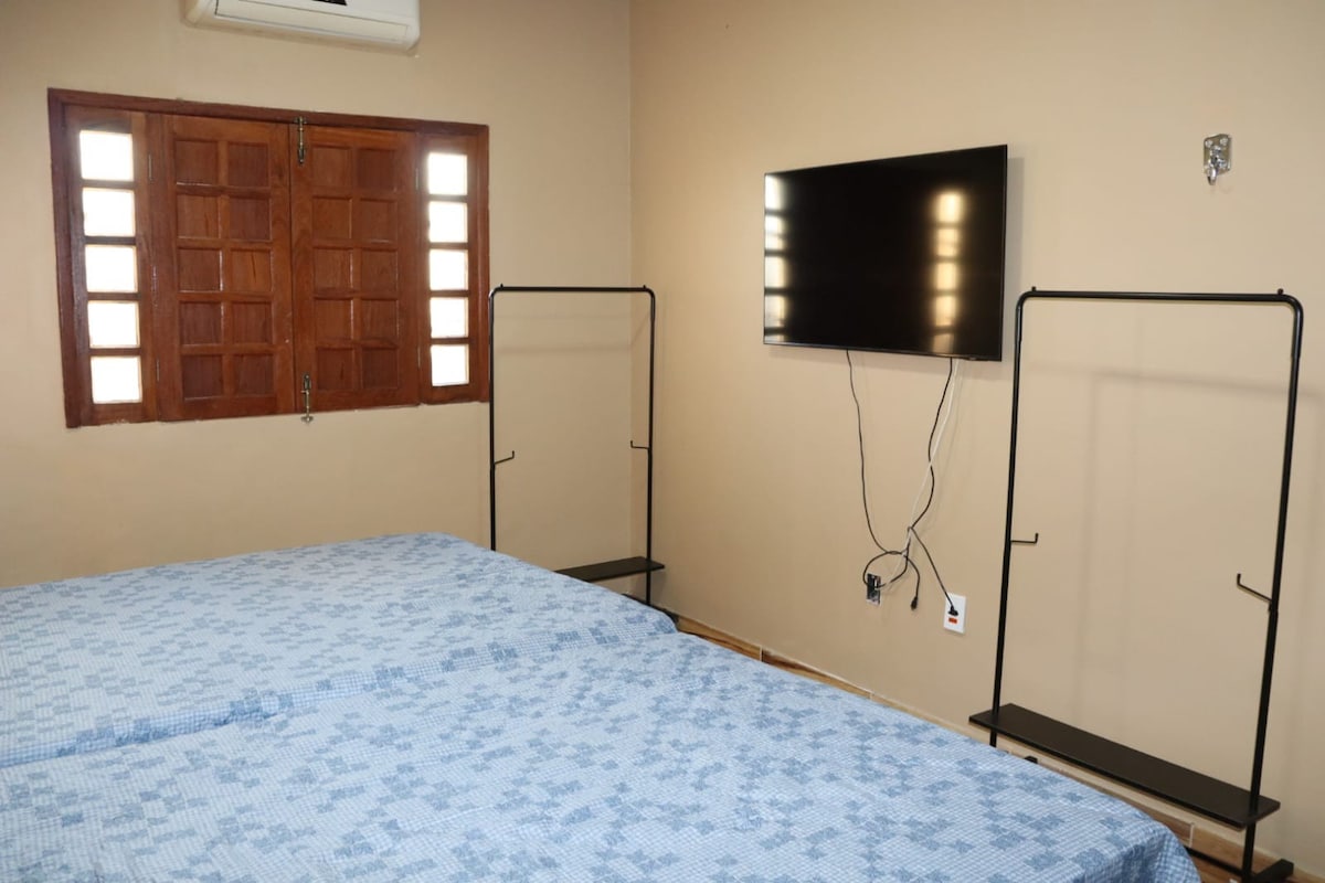 🌞🏖️Tuklasin ang postcard city ng Manaus. May modernong waterfront, pinahusay na imprastraktura ng kalsada, kumpletong mga serbisyo, at mga high-end na development ang Ponta Negra. Praktikal at mahusay Supermarket, Botika, mga restawran sa malapit, shopping, paliparan. "Magpahinga sa tahimik at komportableng kapaligiran, na napapalibutan ng kalikasan. Dito mo makikita ang balanse na kulang." "Inihanda nang may pagmamahal para maramdaman mong parang tahanan ka."