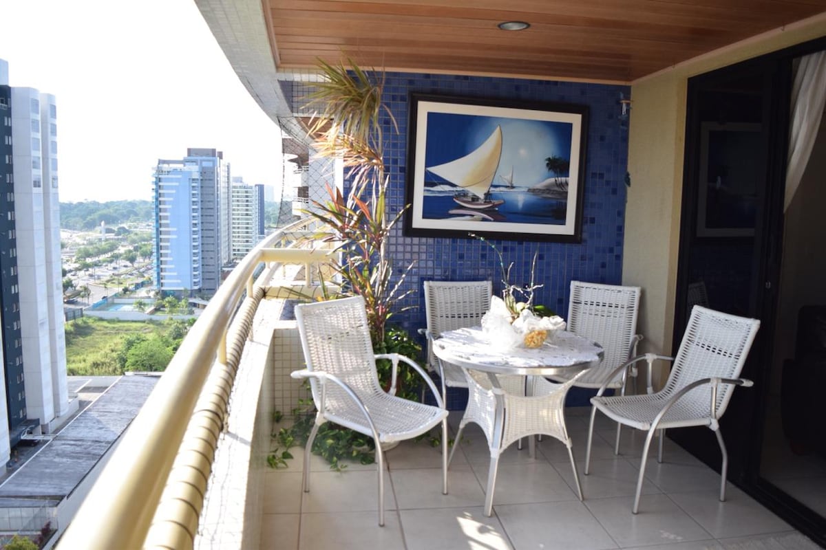Apartment lahat sa Chapada, sentralisado malapit sa lahat ng bagay sa Manaus, sa tabi ng Amazonas shopping malls (pinakamalaking shopping mall sa Manaus), Millenium at Plaza, bilang karagdagan sa Bosque Clube at Parque dos Bilhares, Sambódromo, Arena da Amazônia at Estacio, Unip, UEA at Fametro kolehiyo; din ito ay tumatagal ng bentahe ng mga pinakamahusay na restaurant, bakeries,supermarket, hall, palabas at mga kaganapan sa lungsod. Ang kaaya - ayang property, na ganap na inilaan para sa pag - upa, sa isang cost - benefit ratio na mas mataas kaysa sa mga hotel. Ngayon ay may wifi at SMART TV.