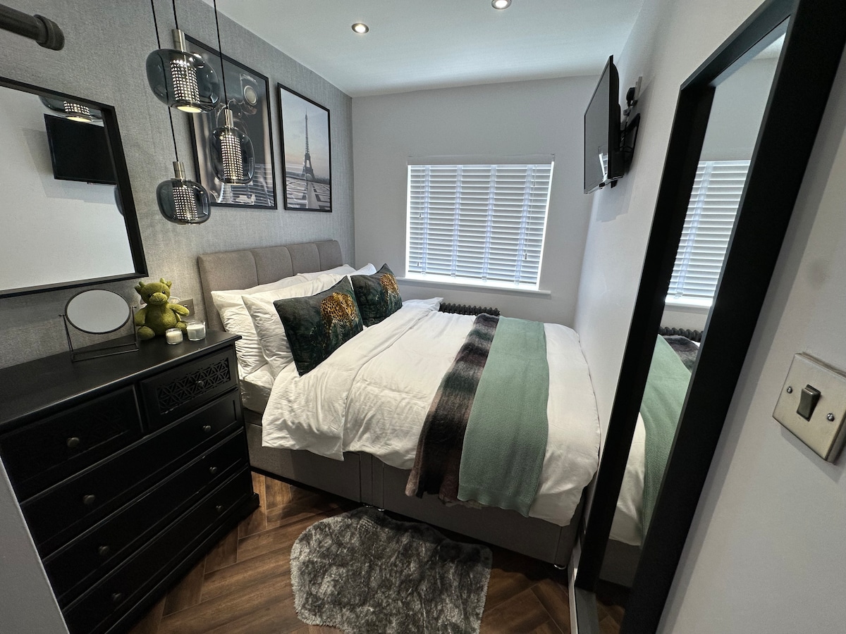 Makaranas ng marangyang apartment na ito na may 2 silid - tulugan, na mainam para sa mga pamamalagi sa paglilibang at negosyo. Nagtatampok ito ng maluluwag na kuwarto, dalawang modernong banyo, kumpletong kusina, at naka - istilong sala at kainan. Magrelaks sa pribadong balkonahe at mag - enjoy sa mga premium na amenidad. Matatagpuan sa isang pangunahing lugar, ang eleganteng retreat na ito ay tumatanggap ng hanggang 6 na bisita, na tinitiyak ang kaginhawaan at di - malilimutang pamamalagi. May bayad na paradahan na available sa halagang £ 7 lang kada 24 na oras.