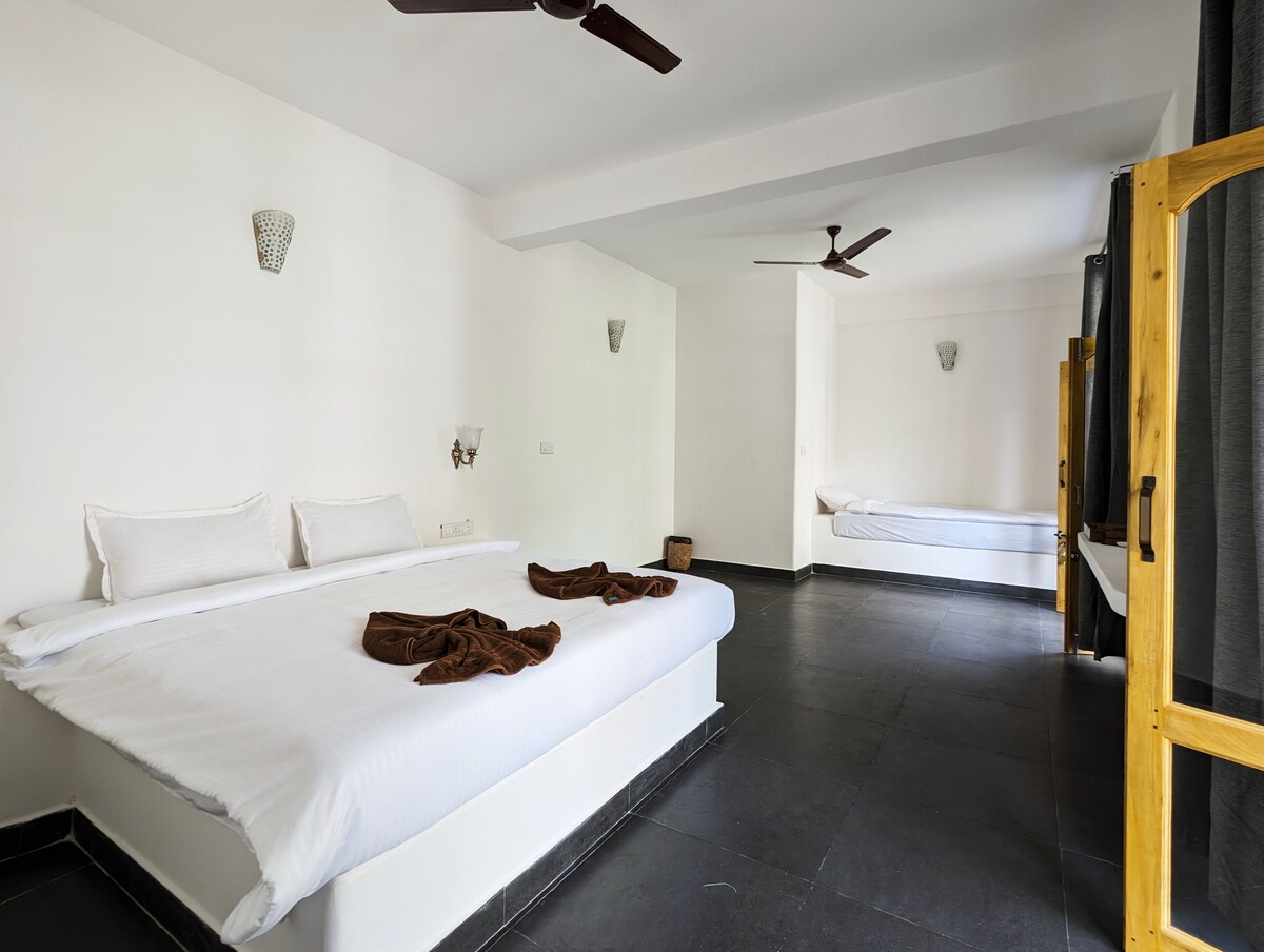 Our Signature Room is a design-forward space featuring a King bed, an open to sky bathroom, and a bathtub blending comfort with thoughtful aesthetics. The room is equipped with high-speed Wi-Fi, air conditioning, and a smart TV for a seamless stay. Located just 1.5 km from the beach and 900 meters from the local market, the property offers easy access while remaining a peaceful retreat. Our spaces are intentionally designed to foster community, creativity, and authentic travel experiences.