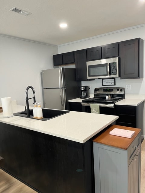 Hanggang sa corkplate at blender, mayroon ang yunit na ito ng lahat ng ito. 1 1/2 milya papunta sa KSU Football Stadium, available ang yunit na ito para sa anumang bagay mula sa gabi hanggang sa taunang pag - upa. Magandang kombinasyon ng moderno at tradisyonal na muwebles na may malawak na imbentaryo ng mga kinakailangan at mararangyang linen para sa iyong kaginhawaan. Itinayo ng mga innovator sa konstruksiyon sa Manhattan, ang istraktura ay may kongkreto at pagkakabukod sa sahig na nagbubunga ng katahimikan na hindi maunahan. BAGO - Pickleball/Tennis/Basketball Court at 1g Fiber Wifi!!