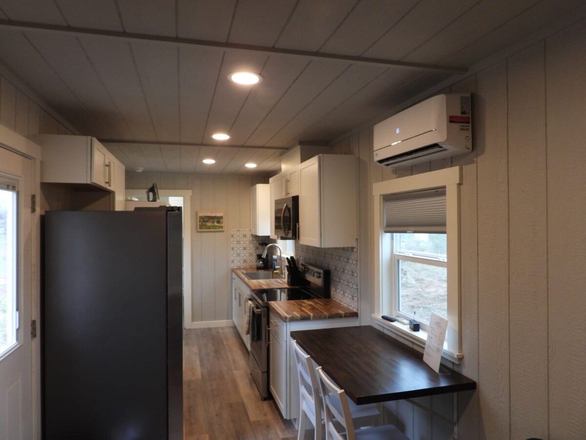 I - unwind sa modernong cabin na ito kung saan nakakatugon ang kalikasan sa kaginhawaan. Masiyahan sa isang interaktibong karanasan sa mga magiliw na hayop sa bukid na sabik para sa mga alagang hayop at treat. Magbabad sa mga tanawin ng tahimik na lawa, mga pastulan, at mga kabayo. Tuklasin ang mga trail sa liblib na lugar. Light - filtering blinds, AC, at Starlink WiFi. Itinayo noong 2023. Mayroon kaming mga baboy, munting kambing, baka, kabayo, asno, at isang itim na labrador na maaari mong batiin Malapit sa Circuit of the Americas, Bastrop, Austin Airport, at Smithville.