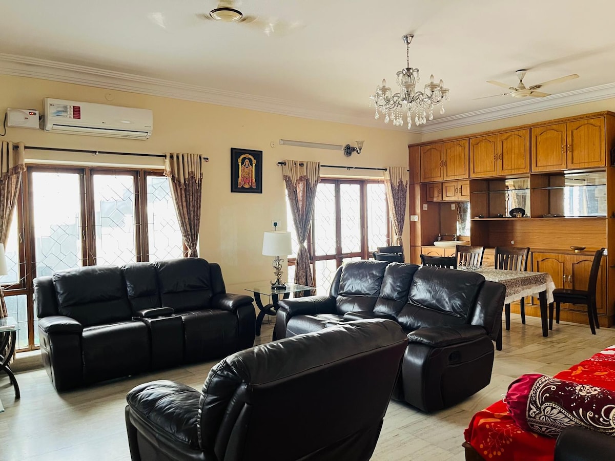 Splendor Homes, isang bagong independiyenteng 3 Bhk house unit (para sa maximum na kasama ang mga bata 5 bisita lamang) na may komportableng kagamitan sa kusina malapit sa Hyderabad Financial Dist. 10 minutong biyahe papunta sa Konsulado ng US. Madaling access sa Outer Ring Road, maaaring maabot ang Airport sa 45 min nang walang mga panganib sa trapiko. Napapalibutan ng maraming restaurant at kainan. Ibinibigay din ang inverter para sa walang tigil na supply ng kuryente (ngunit walang backup ng kuryente para sa elevator). Magrelaks kasama ang iyong pamilya sa tuluyang ito nang malayo sa tuluyan na napapaligiran ng mga halaman.