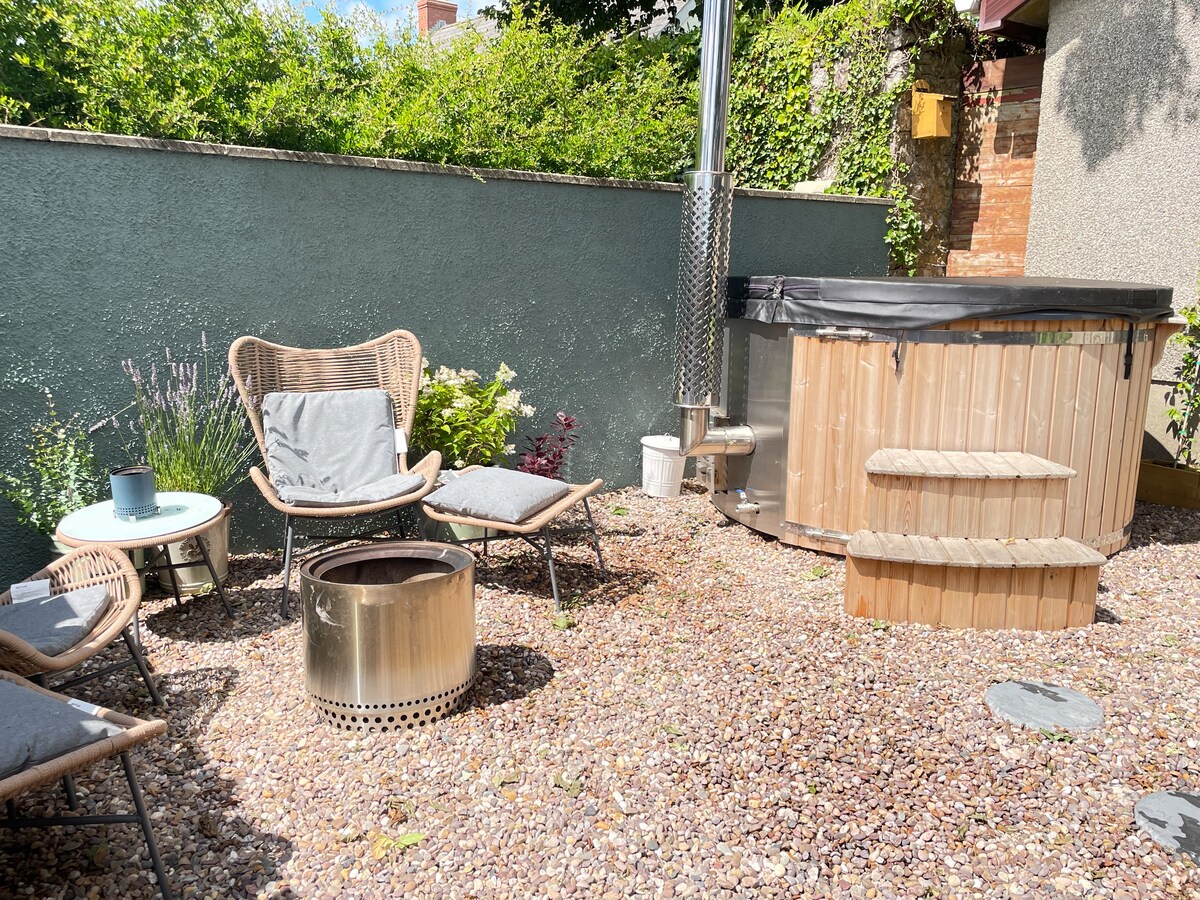 Maaliwalas na Cabin na may Wood Fired Hot Tub & Log Burner