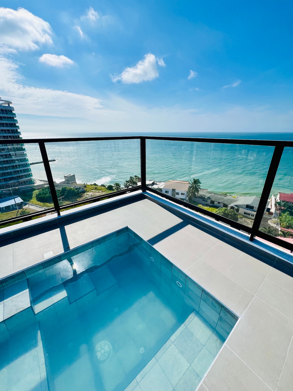 jacuzzi temperado, piscina panorámica climatizada y una ubicación inmejorable. A solo 5 minutos de Playa Murciélago y del Mall del Pacífico, y con dos bajadas al mar a 200 metros, este alojamiento combina confort, diseño y serenidad. Amplios ventanales, luz natural y ambientes elegantes convierten cada momento en un descanso único junto al océano.