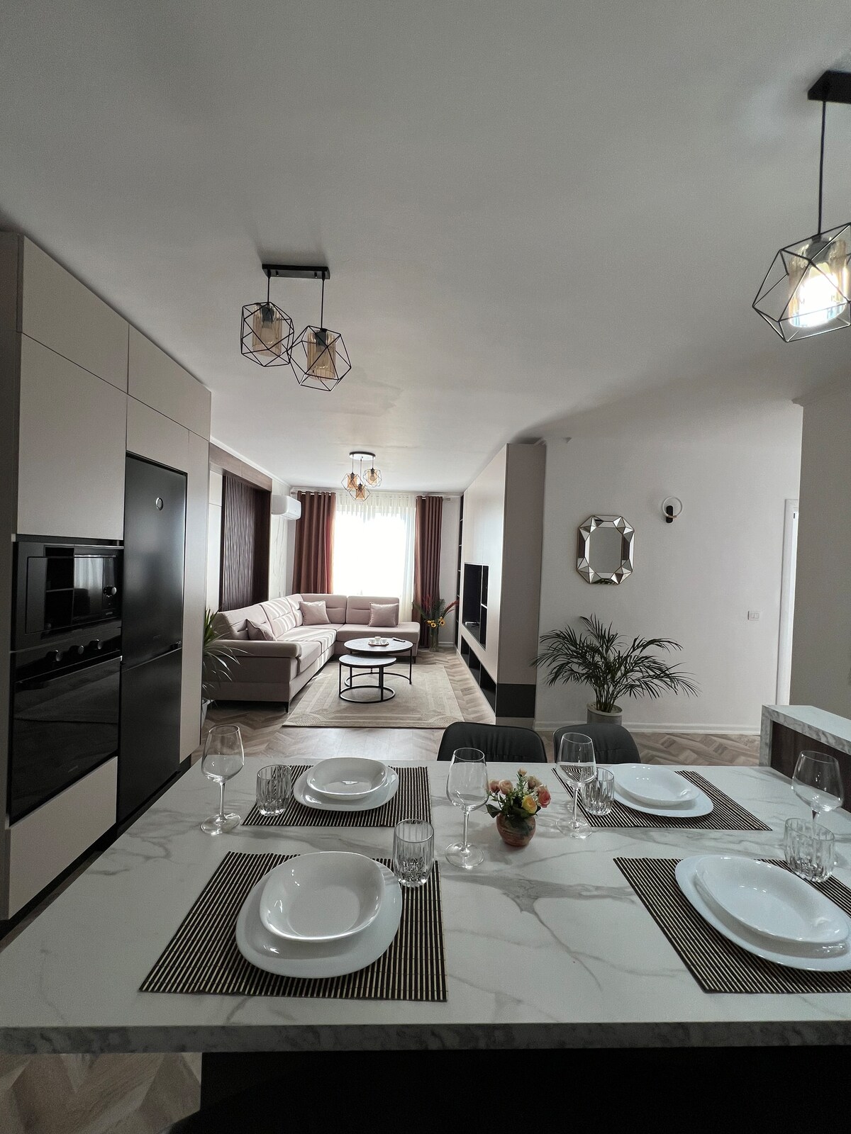 Welcome to our cozy and modern Apart Hotel nestled in the heart of Shkoder, Albania. Perfect for couples or small families, our contemporary 75m² space offers everything you need for a comfortable stay. We also organize unforgettable trips to Shala River/Komani Lake, Theth and Valbone, so you can easily experience the beauty of the Albanian Alps during your stay