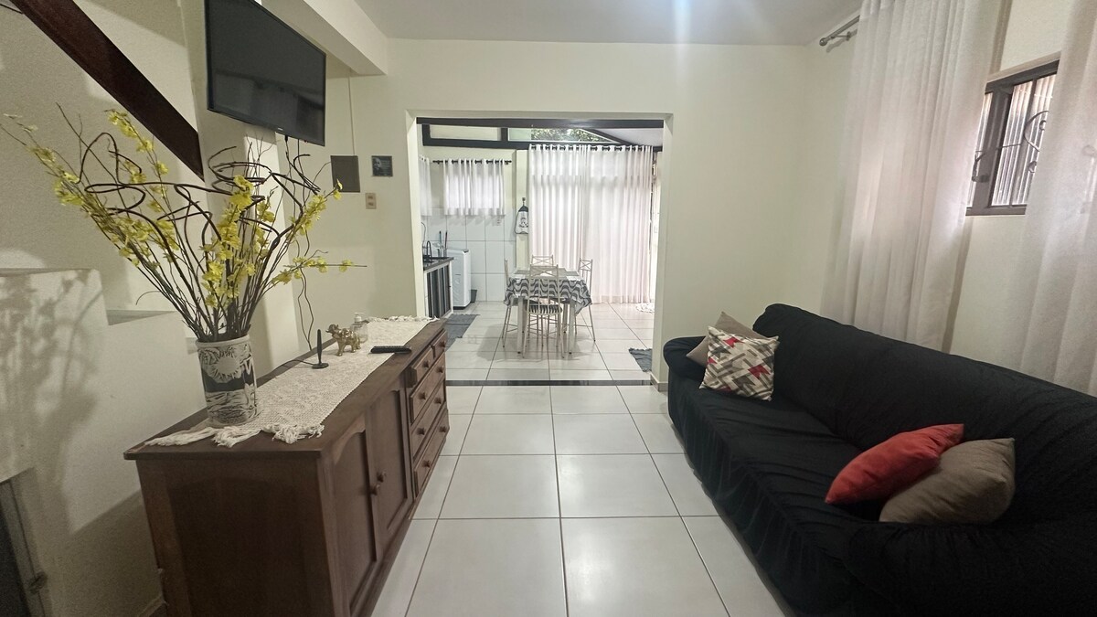 Mag‑enjoy sa komportable at nakakarelaks na pamamalagi sa bahay na idinisenyo para sa pagpapahinga. May swimming pool na may talon at whirlpool, lugar para sa barbecue, at kumpletong kusina na may kalan, refrigerator, at mga pangunahing kagamitan sa tuluyan. May suite, social bathroom, TV, garahe, at ligtas at maaliwalas na kapaligiran. Napakagandang lokasyon, malapit sa Buracão Park, mga supermarket at lokal na tindahan. Ikaw mismo ang bahala sa buong lugar.