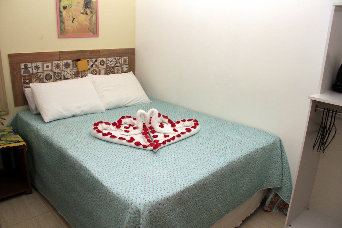 Triple Suite na may Double Bed at Single Bed. Praktikal at Komportable, may 2 Bentilador. May kasamang Electric Shower at Bed/Bath Linen. Humigit‑kumulang 100 metro ang layo sa São Bento Beach at 5 minuto ang lalakarin papunta sa mga pamilihan, panaderya, at botika sa malapit.