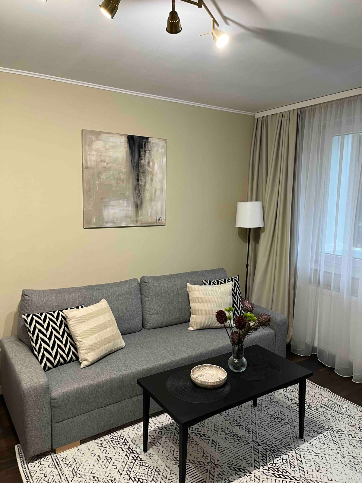 Magrelaks sa tahimik at naka - istilong tuluyan na ito.Mirage.Apartments ay naghihintay para sa iyo sa isang bagong bloke na may maraming mga pasilidad: Shoping Park (Lidl, Kaufland atbp) 2 minutong lakad ang layo ng St Trinity Cathedral. Mga restawran 2 minuto ang layo (My Chef,Smart,Europe). Central Park 2 minutong lakad. Bus station viz a vi ATM Nag - aalok din sa iyo ang Mirage.Apartaments ng modernismo sa lokasyon ng mga nangungunang klase. Ang higaan na may velvet upholstered bedside table na may premium na 160/200 luxury mattress. Nagsasalita ako ng Ingles!