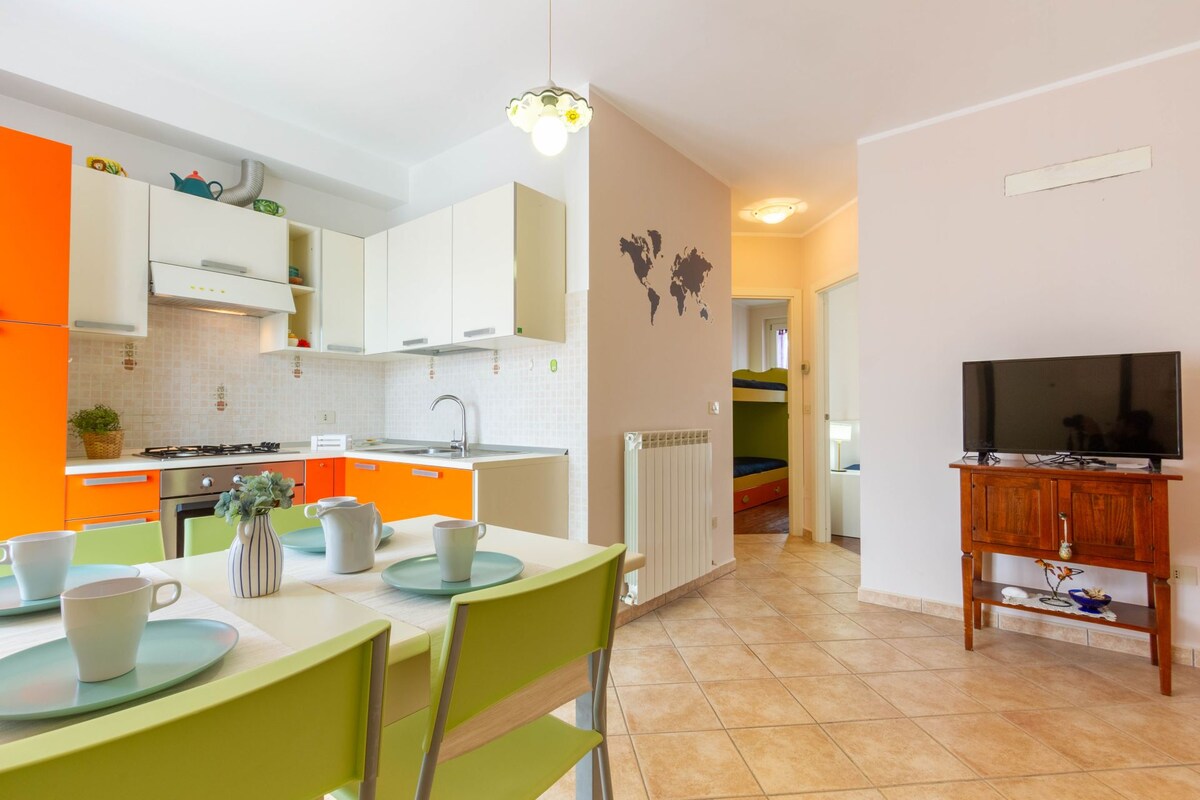 200 metro ang layo ng apartment ko mula sa mga beach facility at mula sa supermarket, pharmacy, restaurant, pizzeria, bar, at entertainment venue. Matatagpuan ito 10 minutong lakad mula sa sentro ng lungsod (600m). Walang elevator pero nasa unang palapag ito. May WiFi, mga sapin at tuwalya, plantsa, mga toiletry at hairdryer. Bago at kumpleto sa gamit na kusina. Mayroon akong isang pribadong paradahan o mayroon ding pampubliko at libreng paradahan sa kalye.