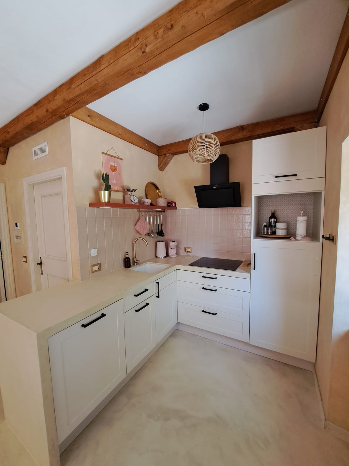 Ang 180 sqm apartment na ito ay binubuo mula sa pangunahing bahagi ng Gaggia family home. Itinayo ang bahay noong mga 1920 at hindi pangkaraniwang nasa lupa ang pangunahing kuwarto. Ang focal point ay ang malaking fireplace na may dalawang upuan sa bangko sa loob ng estruktura nito. Lubhang napinsala dati, ginawa namin itong priyoridad habang ipinapanumbalik ang property. Ang pinakamalaking pagbabago na kinakailangan ay ang paglikha ng mga bagong hagdan na ginawa namin sa isang stable sa likod ng property na ngayon ay may 3 metro na mataas na salamin.