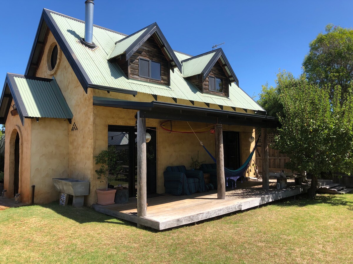 This cottage is hand-made, constructed with natural materials, time, character and love. It’s location off the street provides a quiet space to rest and relax away from the rest of the world. The woodfire and spa bath welcome you home after a day of exploring or wining and dining, and even though you’re right in town, you still feel like you’re in the country.