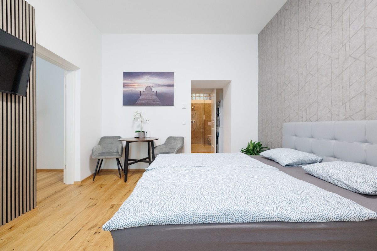Nag - aalok ang komportableng apartment na ito na may terrace ng 45 m² na espasyo para sa hanggang 2 tao. Ang silid - tulugan na may double bed (180x200), ang sala na may smart TV at dining table at ang modernong banyo na may shower ay ginagawang perpektong paraan ang pamamalaging ito para maranasan ang Vienna. Nag - aalok din ang kuwarto ng kusinang kumpleto sa kagamitan na may mga sustainable na pasilidad ng kape at tsaa at washing machine. Narito ang lahat ng kailangan mo para sa maximum na kaginhawaan at kaunting stress.