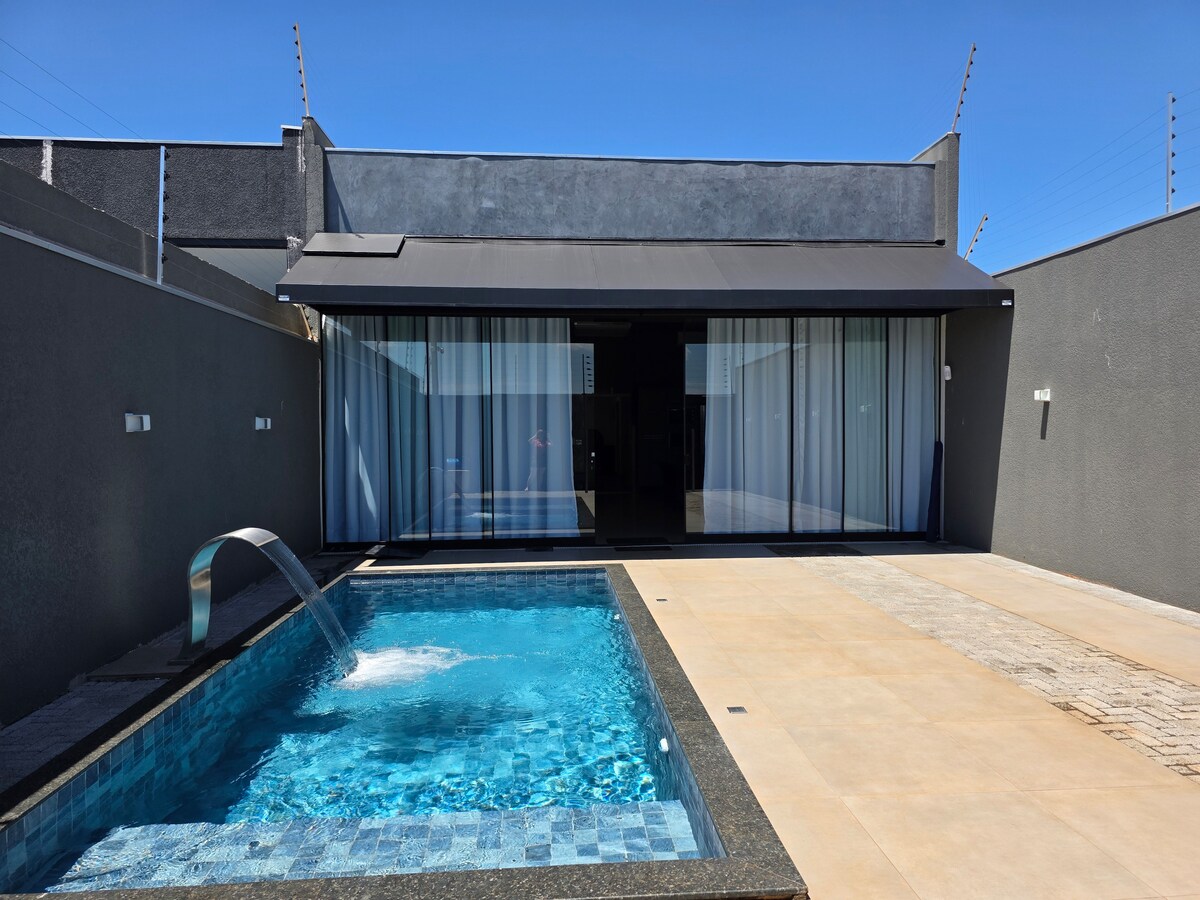 Isang townhouse sa Jardim Novo Horizonte ang Horizonte House na malapit sa Bosque 2 at kayang tumanggap ng hanggang anim na tao. Mayroon itong suite na may king size na higaan at hydromassage, home office at terrace na may barbecue sa itaas na palapag at sa unang palapag, may karaniwang banyo, double room, at isang silid - tulugan na may dalawang single bed. May air‑con ang lahat ng kuwarto, at may Wi‑Fi at smart TV sa buong bahay Kumpletong kusina, labahan, at lugar sa likod para sa pahinga. Nag-aalok kami ng mga linen para sa higaan/banyo at sabon.