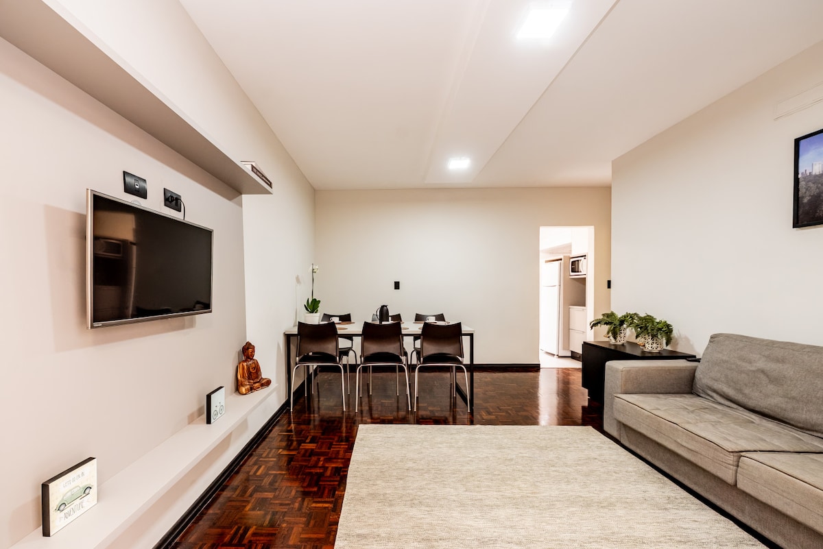 Samantalahin ang Studio na ito na mainam na pagpipilian para sa mga mag - asawa na naghahanap ng romantikong bakasyon o para sa mga nasisiyahan sa kanilang sariling kompanya. Madiskarteng matatagpuan sa Avenida Getúlio Vargas, nag - aalok ang tuluyang ito ng perpektong pagsasama - sama sa pagitan ng estilo at pagiging praktikal, kung saan pinag - isipan nang mabuti ang bawat detalye para matiyak ang hindi malilimutang karanasan sa kahanga - hangang lungsod. Ang espasyo ay may queen bed at double - size na Sofa bed, na may kabuuang 4 na tao, sa pagitan ng kama at sofa bed.