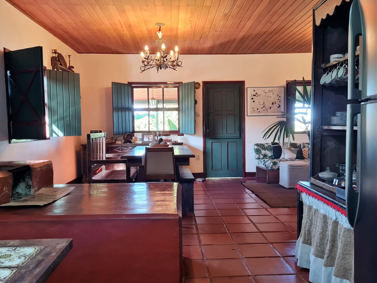 Ang Cristais da mata ay isang ari - arian na may isang masayang kalikasan, tahimik at sa gitna ng isang kagubatan ng mapangalagaan na kagubatan ng Atlantic, na matatagpuan 10km mula sa Ouro Preto, isang World Heritage City. Dito, mga puno, talon at maraming berdeng bumubuo ng natatanging tanawin, na kumpleto sa magandang paglubog ng araw. Ang bahay ay may isang rustic na istraktura, na may kahoy na kalan at pagpainit ng tubig at isang maginoo na kalan. Isang fireplace para sa malalamig na araw at mesa para sa mga card game.