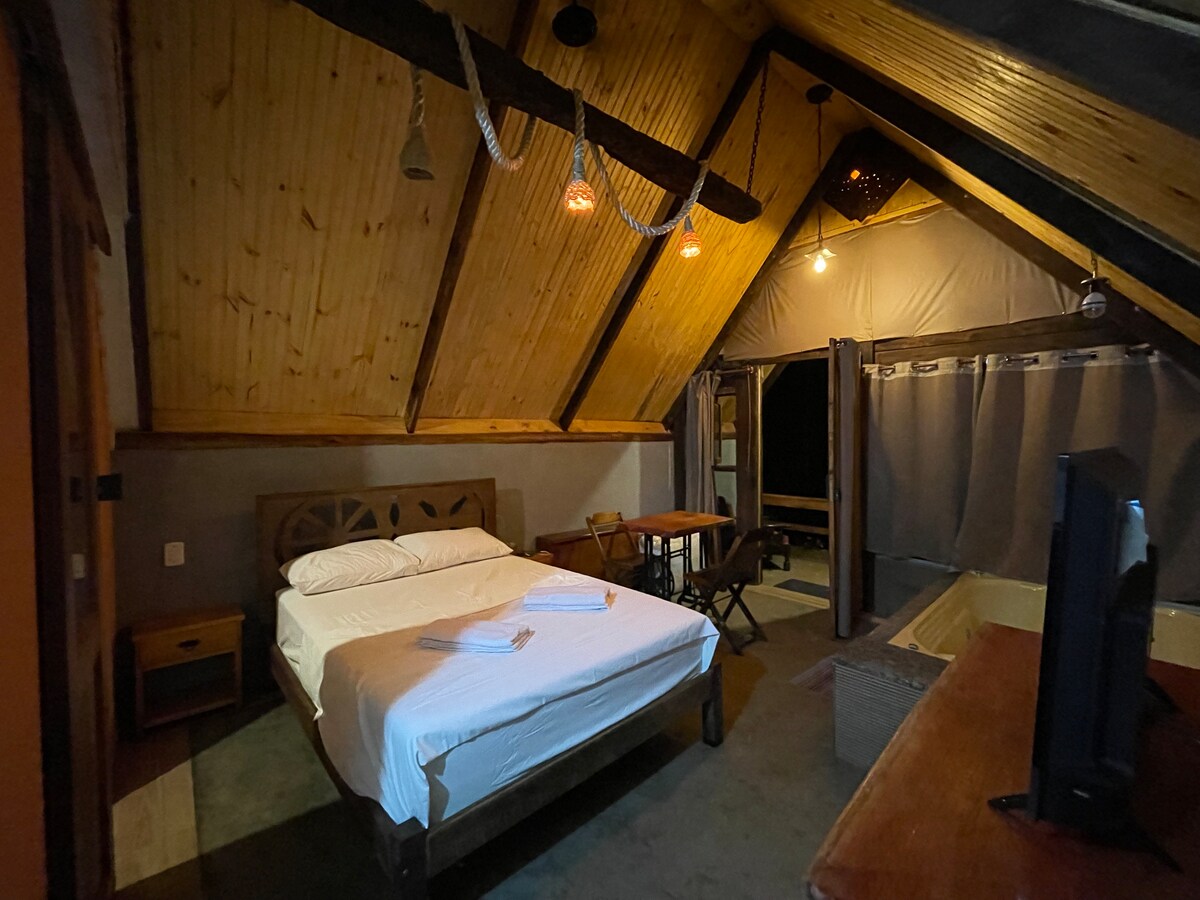 O Loft Beija-Flor, localizado no Refúgio de Lavras, é um local romântico, perfeito para casais e amantes da natureza que buscam descanso e tranquilidade. Você pode admirar, direto da cama ou da hidromassagem, uma vista deslumbrante para um mar de montanhas e, com um pouco de sorte, avistar a Serra do Caparaó. Em dias nublados, o loft é envolvido por nuvens, proporcionando a sensação mágica de estar flutuando entre elas. À noite, um céu estrelado brinda os visitantes com um espetáculo incrível.
