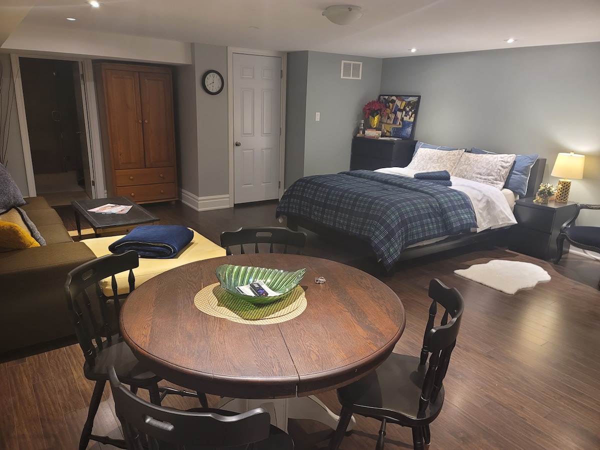 Experience refined comfort in this modern Mississauga retreat. Thoughtfully designed with premium finishes and high-end stainless steel appliances, this bright and stylish space offers a fully equipped kitchen, cozy living area, and private setting ideal for short or extended stays. Located minutes from Lake Ontario, waterfront trails, parks, Port Credit, and quick access to Toronto and major highways. Perfect for professionals, couples, or guests seeking a polished, relaxing stay near the lake.