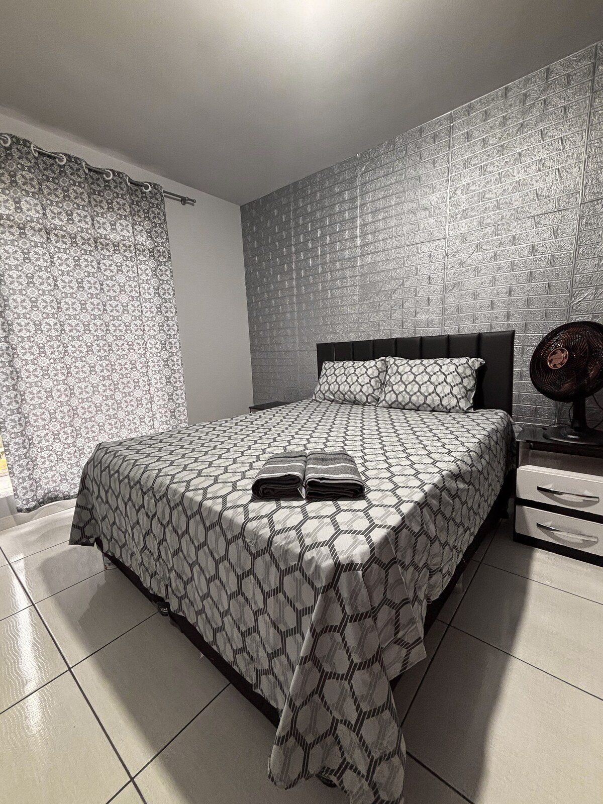 Ap localizado dentro de condomínio seguro para vc e sua família passarem a noite e curtirem Apucarana! 2 quartos: 1 cama de casal e 1 cama de solteiro. (Já incluso roupa de cama e toalhas) 1 banheiro com box e chuveiro Lorenzetti. Lavanderia com tanque e espaço pequeno para secar roupa. Sala simples com Smart TV. Cozinha planejada com geladeira, fogão e utensílios básicos. Garagem coberta. Obs: o ap será entregue limpo e organizado. Limpeza extra inclusa para locação acima se 10 diárias.