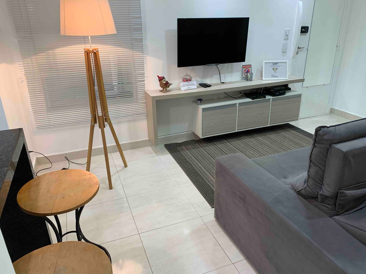 Maikling pamamalagi, na pinalamutian nang eksakto tulad ng sa mga litrato, mayroon kaming 2 unit sa parehong complex para makapag - host kami ng hanggang 14 na tao . Mga pangunahing kagamitan sa bahay para makapagluto ka tulad ng blender, wine glass, tasa, mixer, Nespresso machine, washing machine, bed linen, 2 bathrobe at tuwalya . Mayroon itong magandang lokasyon, supermarket, beauty salon, 24 na seguridad sa condominium, tahimik ang kapitbahayan.