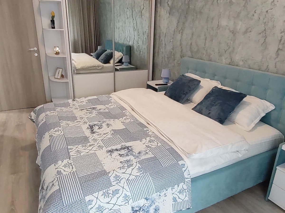 Matatagpuan ang apartment sa layong 3.5 km mula sa Iasi International Airport, 4 km mula sa Palace of Culture, 700 m mula sa supermarket ng Kaufland at 500 m mula sa Carrefour Express,at 100 metro lang ang layo ng istasyon para sa pampublikong transportasyon. Matatagpuan sa bagong gusali, ang mga bisita ay may 2 silid - tulugan na may king size na higaan,sala na may sofa bed, 2 balkonahe na may terrace, banyo at kusina na nilagyan ng mga pinggan at kasangkapan .