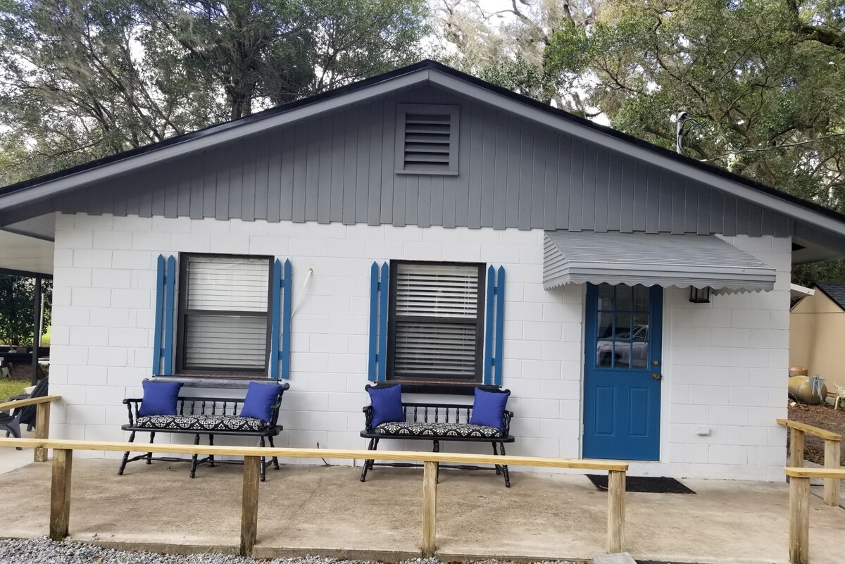 Damhin ang katahimikan ng paggising sa isang bukid ng kabayo habang ilang minuto lang papunta sa mga pangunahing atraksyon tulad ng World Equestrian Center (4 na milya), Silver Springs State Park (12 na milya), at maraming iba pang likas at masayang atraksyon. Itinayo ang 521sq. ft. cottage na ito noong 2021 at may lahat ng kaginhawaan at kaginhawaan ng pagiging nasa sarili mong tuluyan. Magrelaks sa gitna ng mga puno ng oak at mga nakapaligid na pastulan ng kabayo…o dalhin ang iyong sariling kabayo sa isang pribadong pastulan sa labas ng cottage (dagdag).