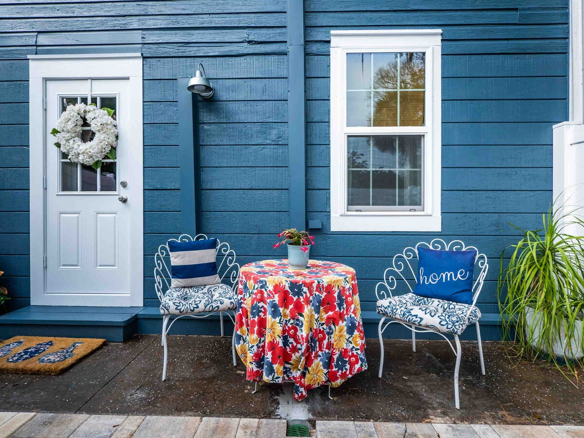 Bagong inayos na Queen bed & full sleeper sofa - may 4 na 12 bloke lang papunta sa downtown Ocala na 8 milya papunta sa WEC ( World Equestrian Center). Hiwalay sa pangunahing bahay na w/washer dryer, na nakabakod sa patyo, 1 paradahan, kumpletong kusina. Paumanhin, walang alagang hayop. Hindi pinapatunayan ng sanggol. Gigablast high speed internet. Hiwalay ang Air -nb sa pangunahing bahay pero nasa iisang property ito. Mangyaring huwag pumunta sa likod - bakuran ng pangunahing bahay. Itinatala ng mga Security Camera ang labas ng paradahan ng graba.