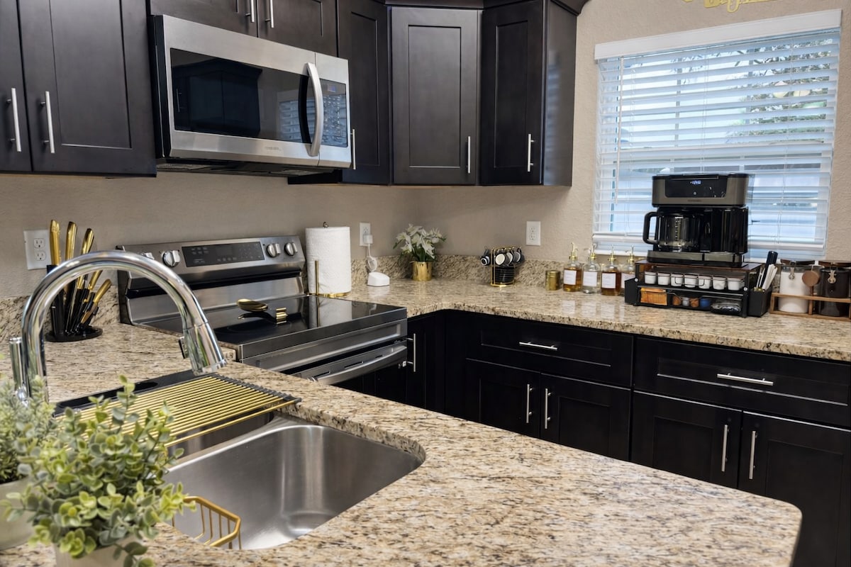 Bagong inayos na Queen bed & full sleeper sofa - may 4 na 12 bloke lang papunta sa downtown Ocala na 8 milya papunta sa WEC ( World Equestrian Center). Hiwalay sa pangunahing bahay na w/washer dryer, na nakabakod sa patyo, 1 paradahan, kumpletong kusina. Paumanhin, walang alagang hayop. Hindi pinapatunayan ng sanggol. Gigablast high speed internet. Hiwalay ang Air -nb sa pangunahing bahay pero nasa iisang property ito. Mangyaring huwag pumunta sa likod - bakuran ng pangunahing bahay. Itinatala ng mga Security Camera ang labas ng paradahan ng graba.