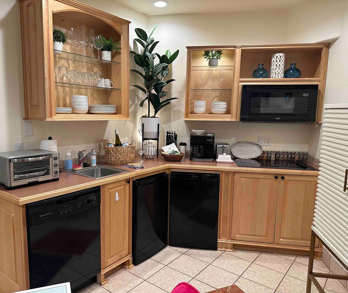 Enjoy a stylish experience in this new ADU style unit. Located in the lower level of a home with continental breakfast. Better than a hotel stay with a comfortable queen mattress and a sofa bed in the bedroom. Living room area complete with a large couch that can also be a bed, a table for four and a reading nook. Cozy up to a wood burning fire in the winter. Small kitchenette for simple meal making. Tile shower in bathroom. Walk to downtown and experience wine tasting and delicious local fare!
