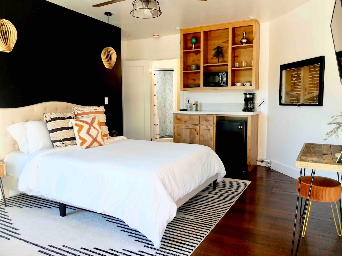 1 oras na biyahe sa Yosemite Valley at mga hakbang lamang mula sa makasaysayang downtown strip ng aming lumang bayan ng pagmimina, Mariposa, ang bagong ayos na 1938 motel room na ito ay may lahat ng kailangan mo upang simulan ang iyong mga pakikipagsapalaran! Tangkilikin ang 5 - star mattress para sa isang kamangha - manghang pagtulog gabi, marangyang banyo na may rainfall shower at bidet, at maginhawang wet bar na may microwave, mini refrigerator, lababo, coffee pot at pinggan! Ang aming gusali ay ang pinakalumang motel sa bayan, na orihinal na nagho - host ng mga turista noong huling bahagi ng 1930!