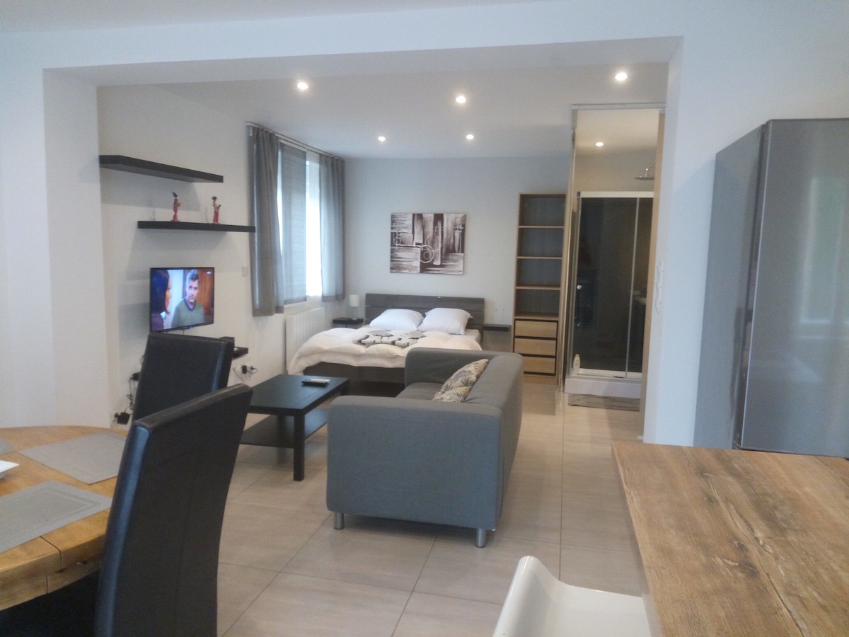 Tahimik na apartment na maginhawang matatagpuan sa mga pintuan ng Amnéville. May mabilis na access sa mga highway ng A4 / A31, mabilis kang makakapunta sa Metz, Thionville, at Luxembourg. Ang apartment ay may magandang sala na may kusinang kumpleto sa kagamitan, isang lugar sa gabi na may aparador at mga hanger para sa iyong mga damit at isang magandang banyo na may walk - in shower. Naka - air condition na studio para sa dagdag na kaginhawaan. Madaling paradahan sa harap ng apartment.