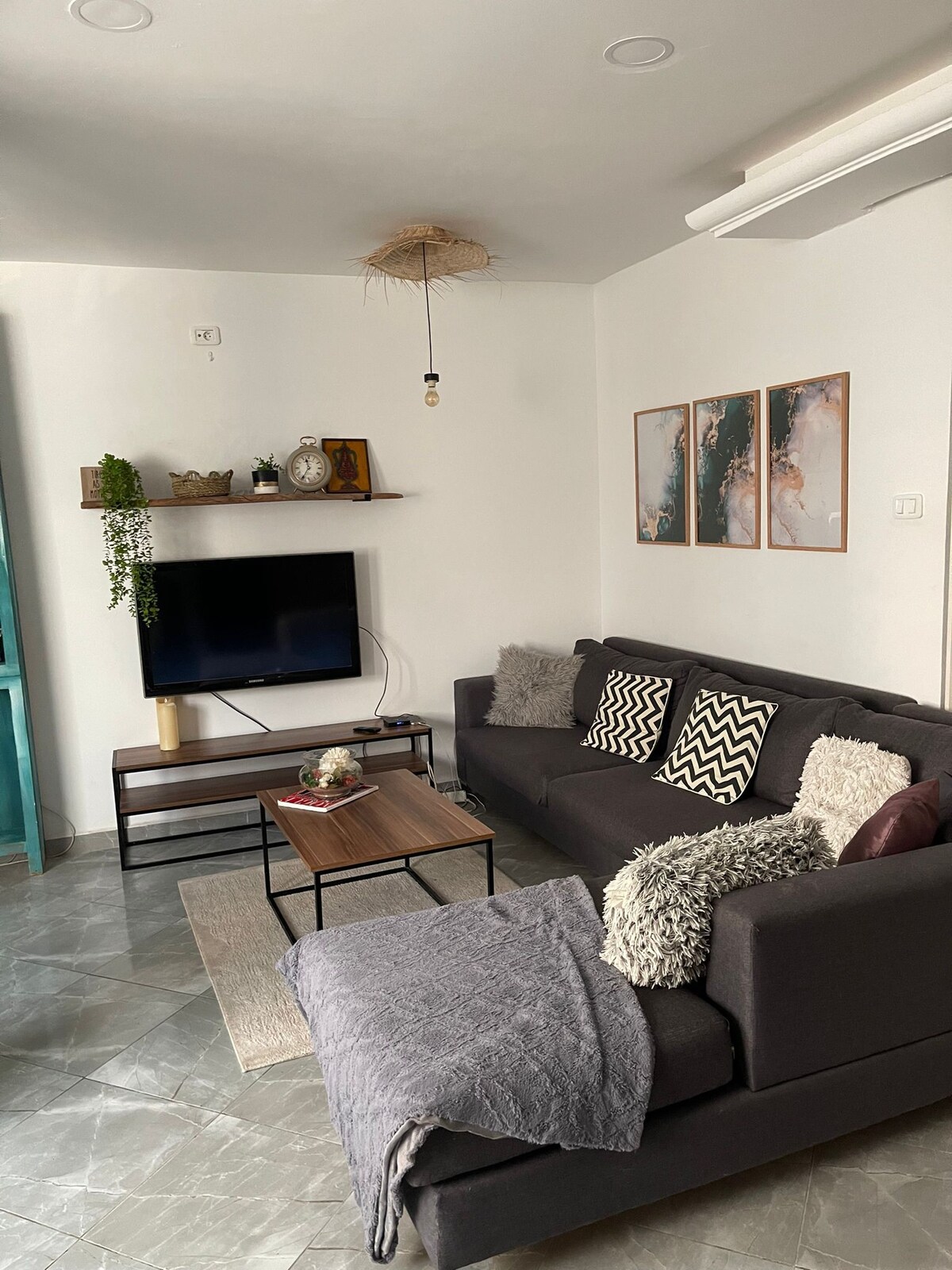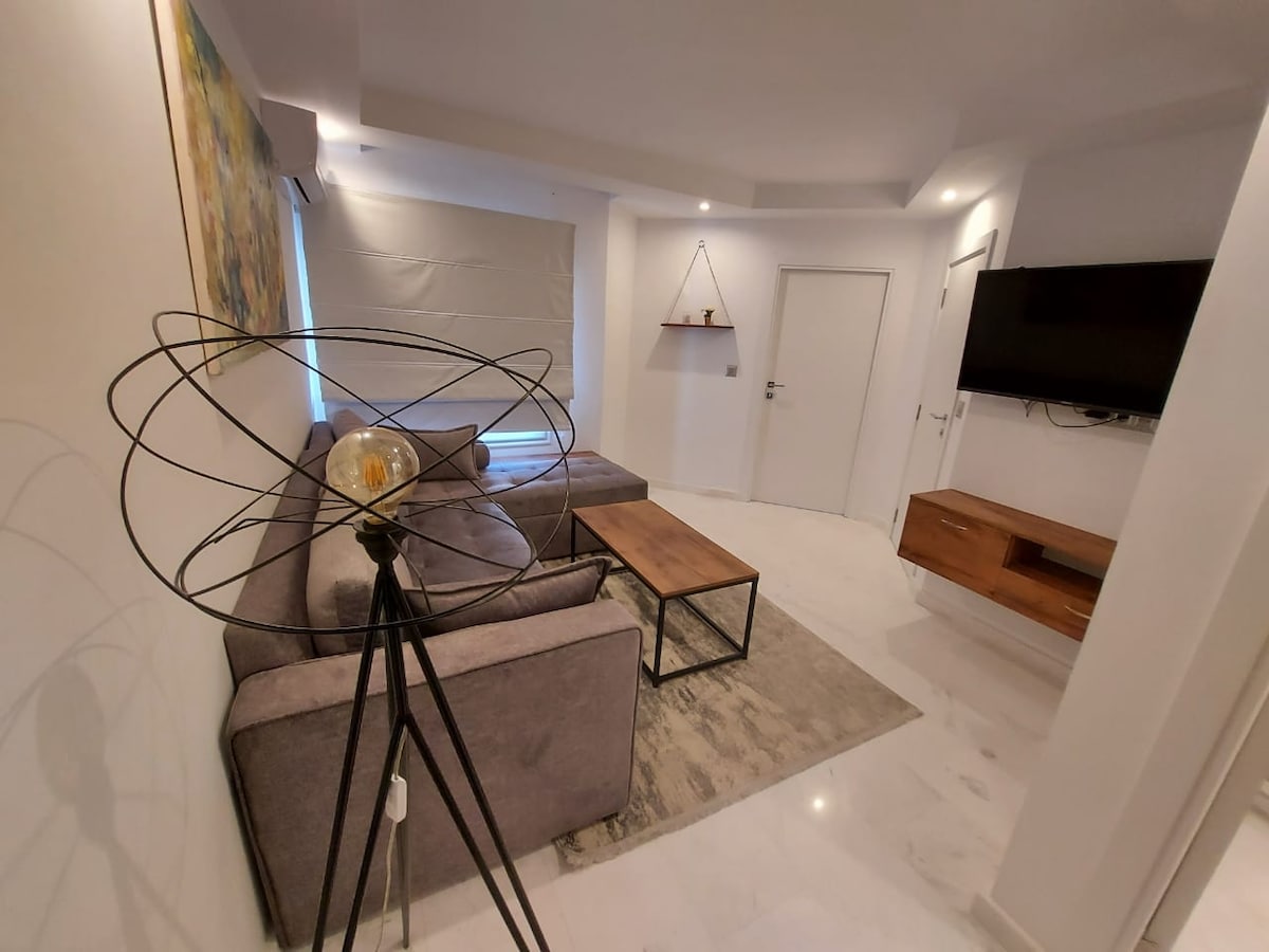 Magandang S+1 sa unang palapag na matatagpuan sa gitna ng Marsa (Marsa Saada) ilang metro mula sa Lycée Francais, sa kulay abong marmol, na binubuo ng isang sala,isang magandang kusina na nilagyan ng lahat,isang banyo na may walk - in shower cabin,isang malaking silid - tulugan, 2 starters, central heating: ⚠️⚠️microwave,⚠️ washing machine ⚠️tV4k smart(lahat ng naka - encrypt na channel) napakataas na bilis ng ⚠️internet dej at⚠️ mesa sa trabaho Napakatahimik at ligtas na kapitbahayan. Hindi pinapahintulutan ang mga⛔ kaganapan