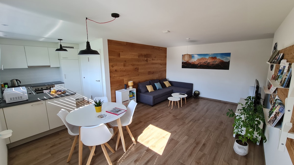 Tahimik, 2 kuwarto, tanawin ng Alps, magandang lokasyon