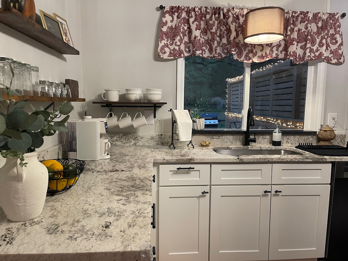 Maligayang pagdating sa aming kaakit - akit na 3Br 2BA home, na natutulog 7. Resort na nakatira sa pool sa isang ganap na ligtas na setting, maganda ang tanawin na may mga puno ng puno, BBQ, panlabas na upuan, at 6ft na bakod sa privacy para mapanatiling ligtas ang iyong mga alagang hayop at bata. Makipag - ugnayan sa kalikasan at mawala ang birdwatching habang nakahiga sa pool. Magluto sa kumpletong Gourmet Kitchen at Maglaro ng mga masasayang laro o manood ng mga pelikula. Ipinagmamalaki ng master suite ang tanawin ng pool, pribadong paliguan, 55" TV, at mararangyang adjustable bed.