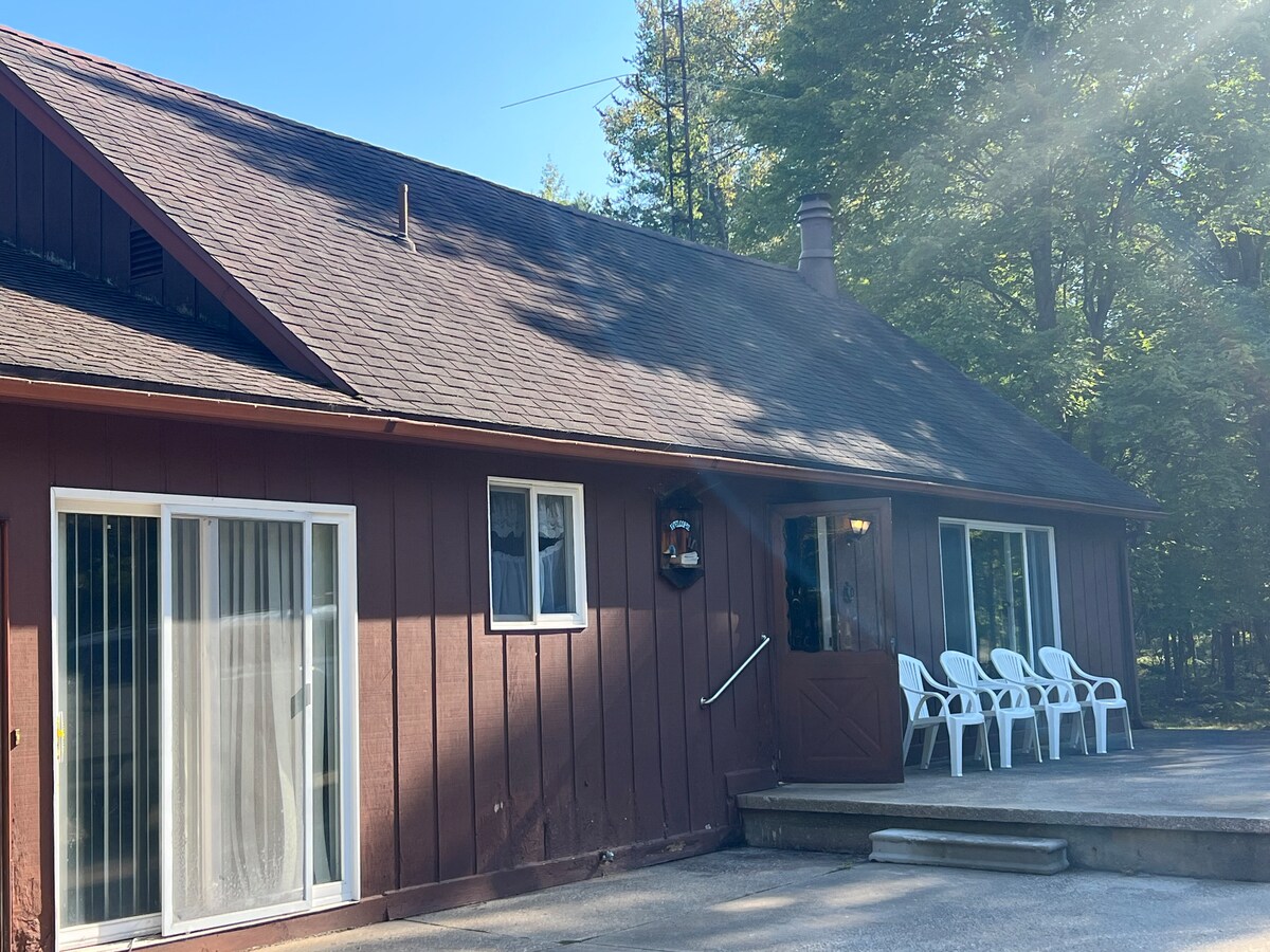 Magrelaks kasama ang buong pamilya sa mapayapang bakasyunang ito sa kakahuyan. Isang pribadong 4 na silid - tulugan, cabin - like na bakasyunan na may maraming espasyo para kumalat. Isang milya lang ang layo mula sa pasukan papunta sa mga tanawin ng Ludington State Park at Lake Michigan. Walkable access to small inlet lake nearby perfect for fishing and wading, as well as state park walking trails, Hamlin Lake boating and more. Mahigit dalawang milya lang ang layo sa mga beach at aktibidad ng downtown Ludington.