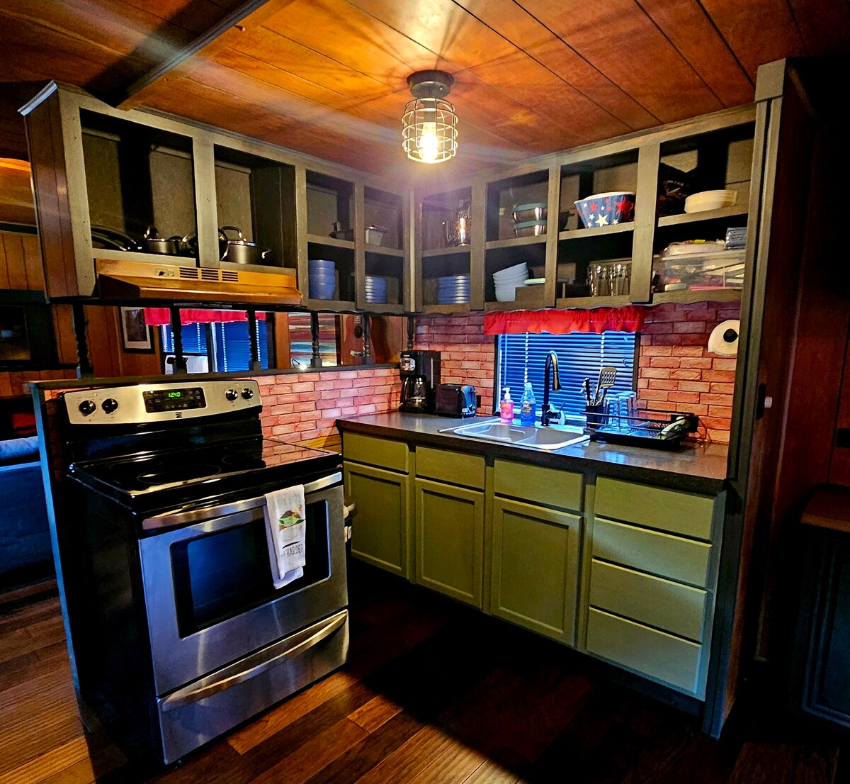 Nestled in the trees high above the water, the Overlook Cabin offers a peaceful, comfortable, and intimate experience of the Ohio River, with a large riverfront window, 8x12ft deck, & jacuzzi bath. The 12x40ft space has a queen, 2 twins, another bed in the loft, and a couch, and would be great for families, hunters, or couples. Local coffee provided. Owners live onsite should any issues arise. Pet friendly. Free wi-fi available.