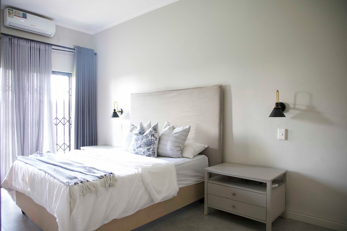 Matatagpuan ang mga hardin ng Rayli sa tahimik na lugar ng Gweru, Riverside. Tamang - tama para sa mga bisitang naghahanap ng mapayapang bakasyon ng pamilya o tahimik na kapaligiran sa pagtatrabaho. Matatagpuan 10 minuto mula sa sentro ng lungsod, naa - access mula sa lahat ng mga pangunahing highway. 4 na ganap na inayos na silid - tulugan kabilang ang isang En - suite, na nag - aalok ng mga komportableng kama, mainit na tubig, at dressing area. Pati na rin ang isang magandang lugar ng hardin, sparkling swimming pool, bbq area, sapat na paradahan, walang limitasyong Wi - Fi, satellite tv/internet, gayunpaman ang internet ay maaaring pindutin at makaligtaan sa Zim.