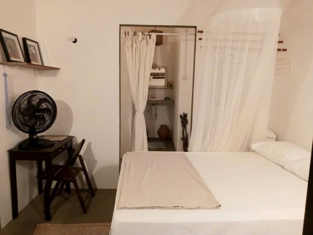 Ang Hibisco chalet ay may double bed at dalawang single bed, pribadong banyo, fan at minibar. Sa lugar sa labas, may mesa na may mga upuan at duyan para magpahinga. May kasamang almusal. Sa panahon ng iyong pamamalagi, makikilala mo ang ilang beach, bundok, ilog, at trail ng rehiyon, bukod pa sa mga pinaghahatiang lugar tulad ng kusina, sala, at reading room. Ang Vila Flor ay isang sustainable na proyekto, na matatagpuan sa nayon ng Diogo, baybayin ng Mata de São João, 70 km lang ang layo mula sa Salvador.