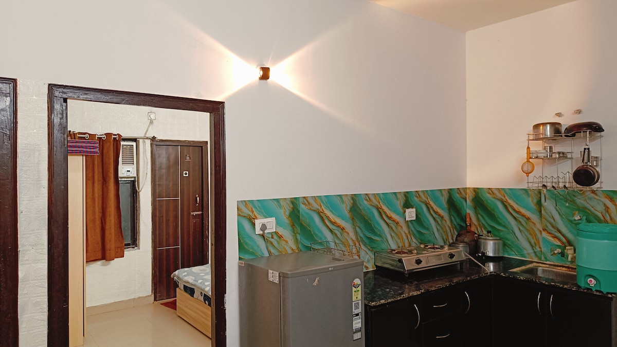 Maluwag at kaaya‑ayang tuluyan na may isang kuwarto at kusina sa isang gated community. Mag - explore ng mga malapit na atraksyon - Keli Kunj marg (2 kilometro) Prem mandir (2.9 km) Isckon (3.4 km) Templo ng Bakey Bihari (5.3 km) Nidhivan (5.7 km) Mag-enjoy sa maliwanag, malinis, at tahimik na lugar para sa mahaba at maikling pamamalagi na may magandang tanawin ng paglubog ng araw mula sa balkonahe. May sariling pag‑check in para sa maayos na pamamalagi. Layunin naming mabigyan ka ng komportable at nakakarelaks na bakasyunan sa panahon ng pamamalagi mo.