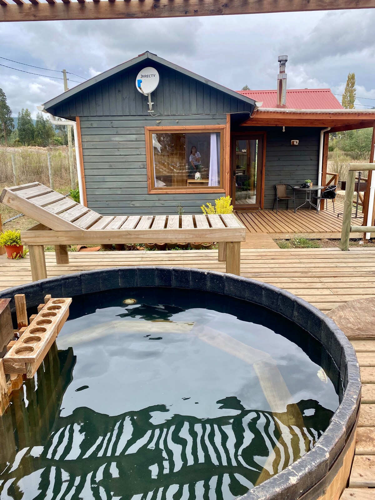 Matatagpuan ang aming cabin sa bayan ng Boldo mata, isang maliit na sektor sa kanayunan ng komyun ng Pelluhue. Napapalibutan ng kalikasan at mga hayop, sinusubukan naming maghatid ng tuluyan para sa iba pang bisita. Idinisenyo ang lugar na ito kasama ng aking asawa, ang bawat detalye ay inspirasyon ng hinahanap namin kapag gusto naming lumayo sa lungsod at magpahinga. 15 minuto ang layo namin mula sa pelluhue humigit - kumulang sa 🚘