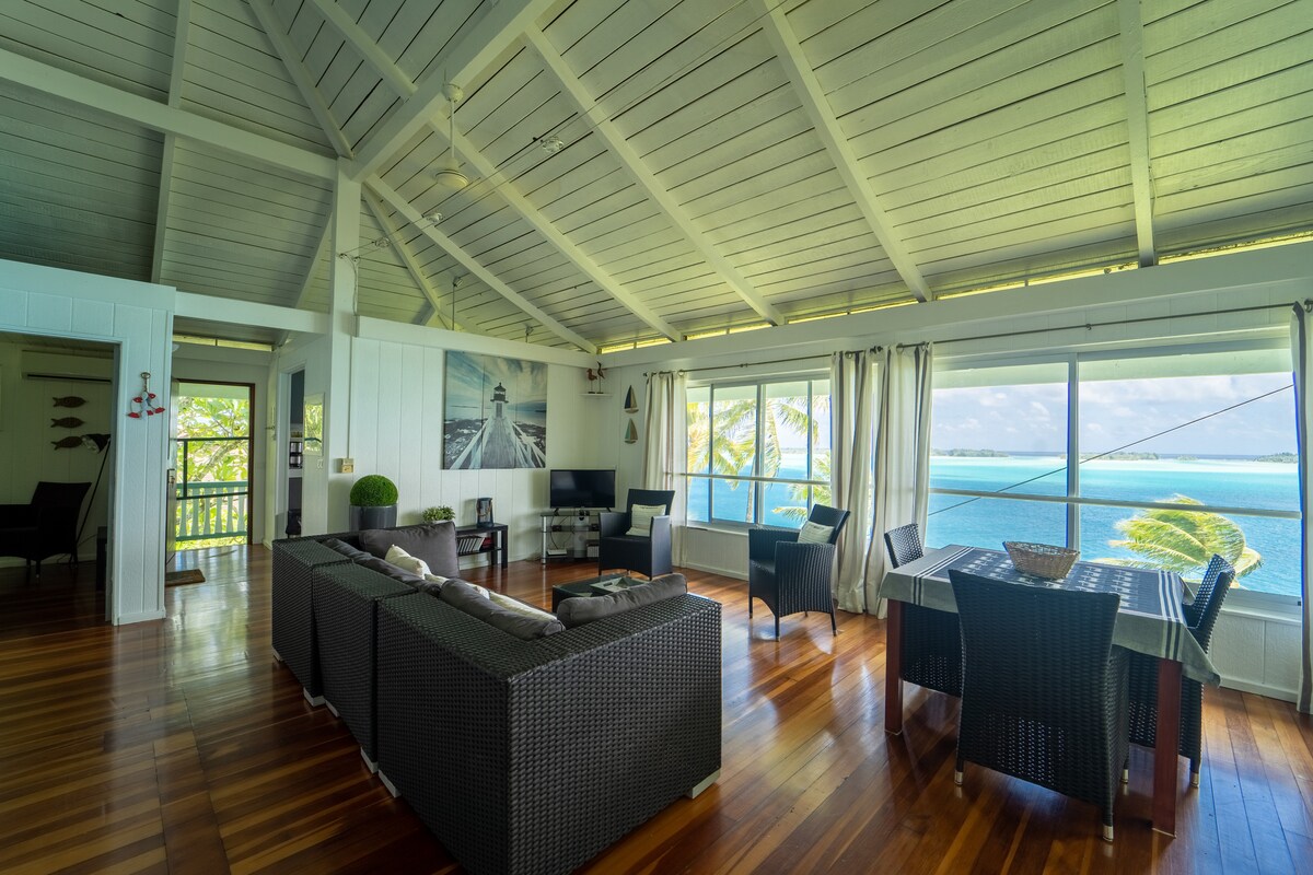 Matatagpuan ang Matira Beach House sa tabing - dagat na may direktang access sa dagat at nakamamanghang tanawin ng lagoon. Kumpleto ang kagamitan at napaka - komportable, ang bahay na ito ay may lahat ng bagay upang gawing hindi malilimutan ang iyong pamamalagi sa Bora Bora, kung kasama mo ang pamilya o mga kaibigan. Malapit din ito sa lahat ng amenidad (meryenda, restawran, tindahan, aktibidad), na nagpapahintulot sa iyo na gawin ang lahat nang naglalakad.
