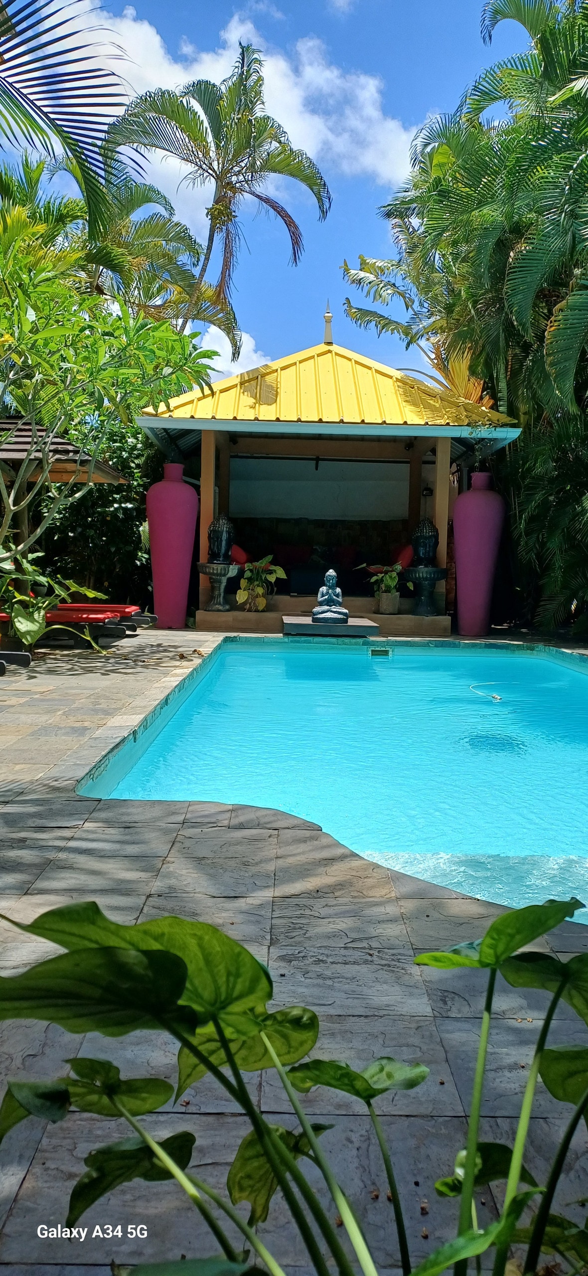 Matatagpuan sa kamangha - manghang Tamarina Golf area na may mga nakamamanghang tanawin sa Rempart Mountain, isang maliwanag at independiyenteng naka - air condition na studio sa isang tahimik na tirahan ng pamilya na may pool at hardin. 5 minutong lakad mula sa bus stop papunta sa Port - Louis, Quatre - Bornes, Flic - en - Flac & Tamarin hanggang sa Baie du Cap, 10 minutong biyahe mula sa Tamarin beach at 15 minutong biyahe mula sa Flic en Flac, mga naka - istilong restawran, supermarket at pangangalagang pangkalusugan. Kumpleto ang kagamitan sa kusina, washing machine at terrace kung saan matatanaw ang hardin. 2 minutong lakad mula sa Le Dix - Neuf Golf.